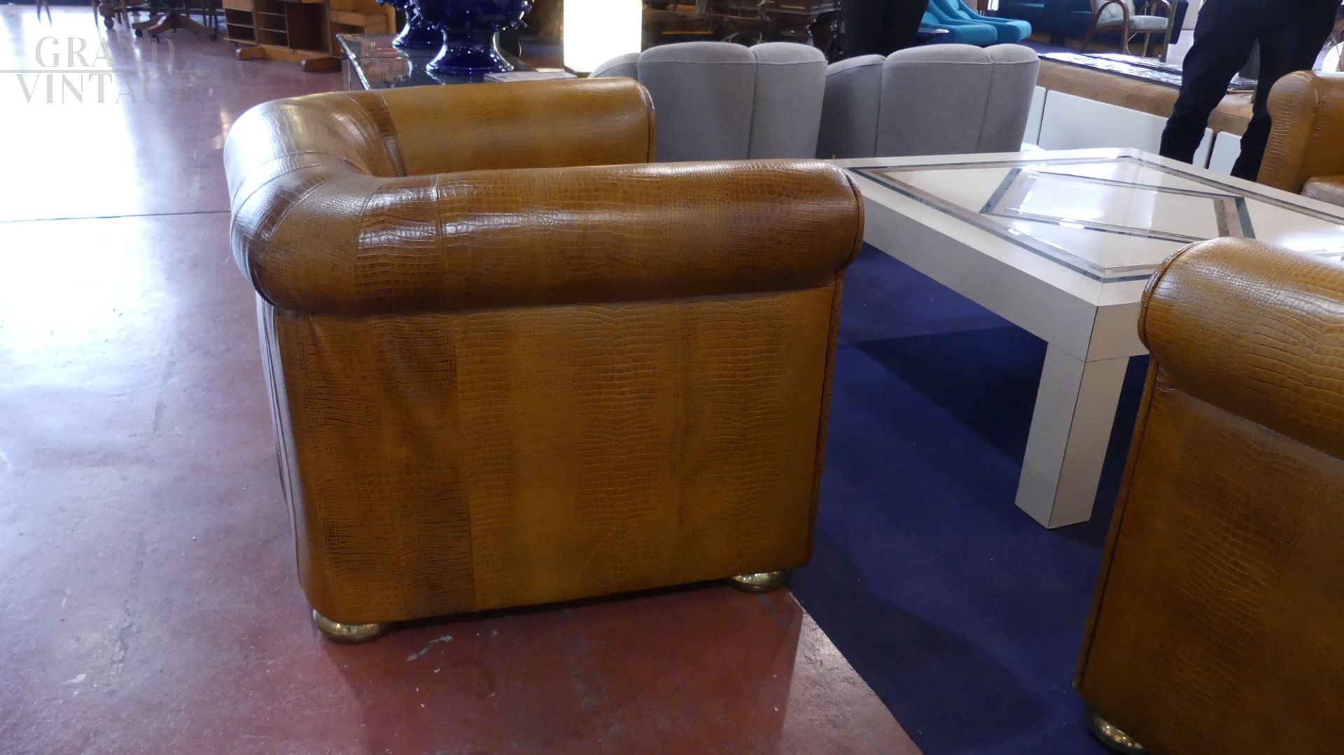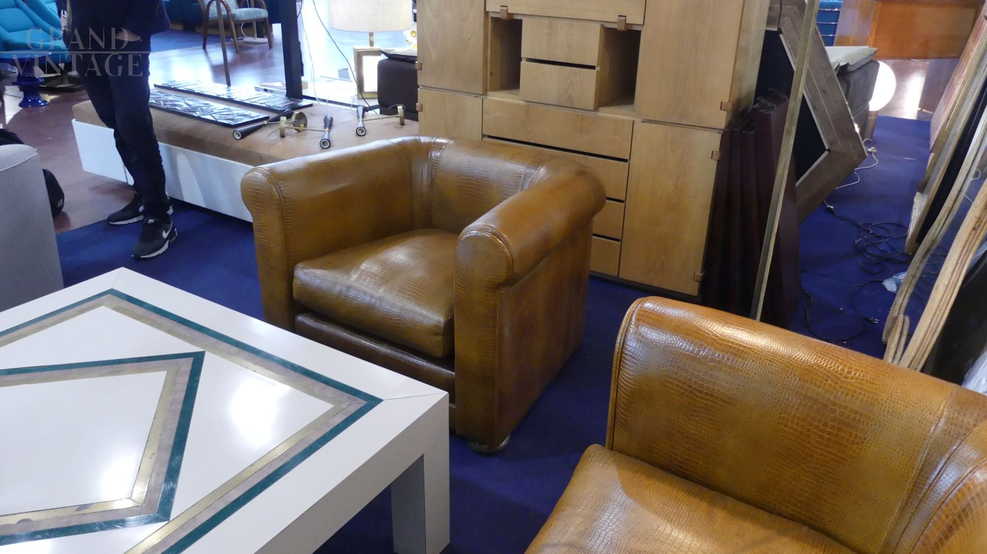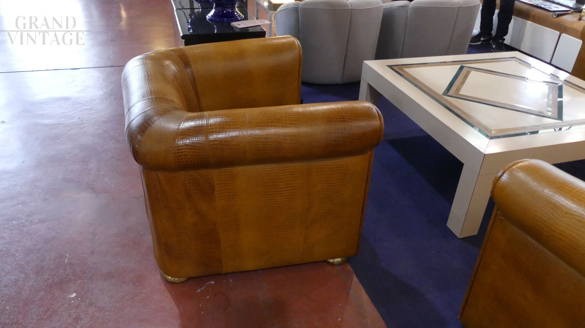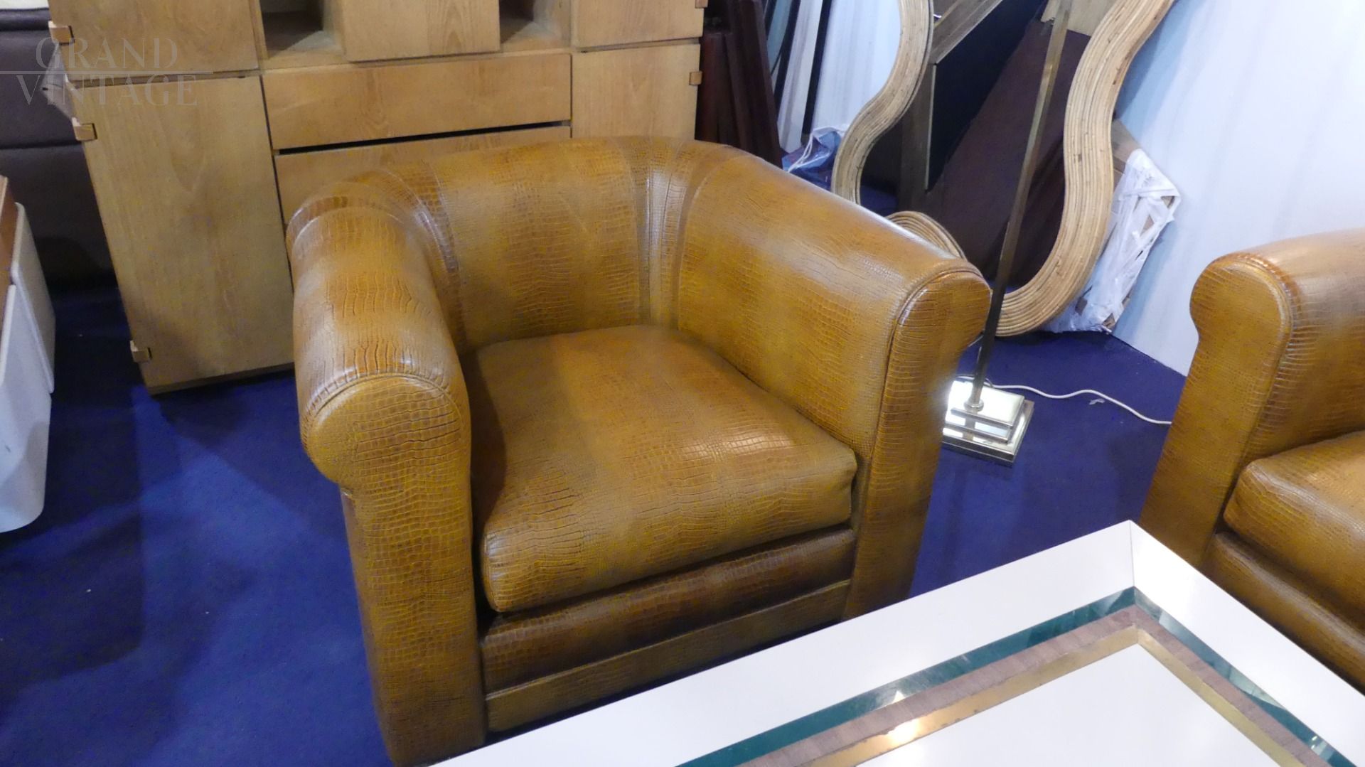 Coppia di poltrone di Tommaso Barbi in pelle stampata a pitone