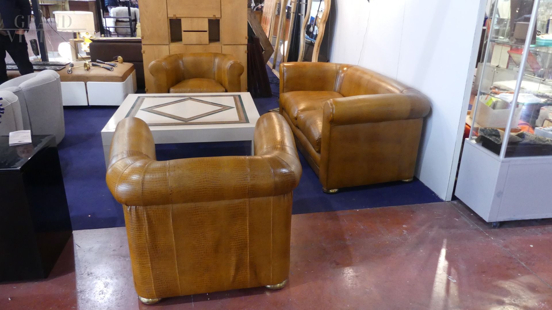 Pair of armchairs by Tommaso Barbi in python-embossed leather