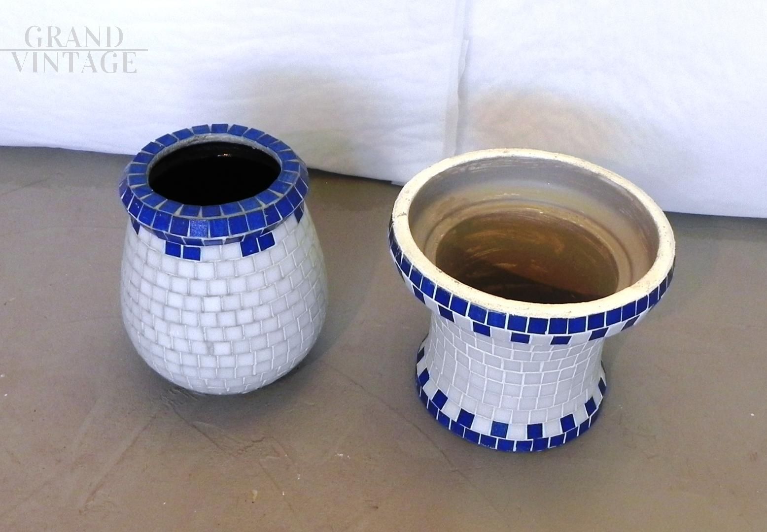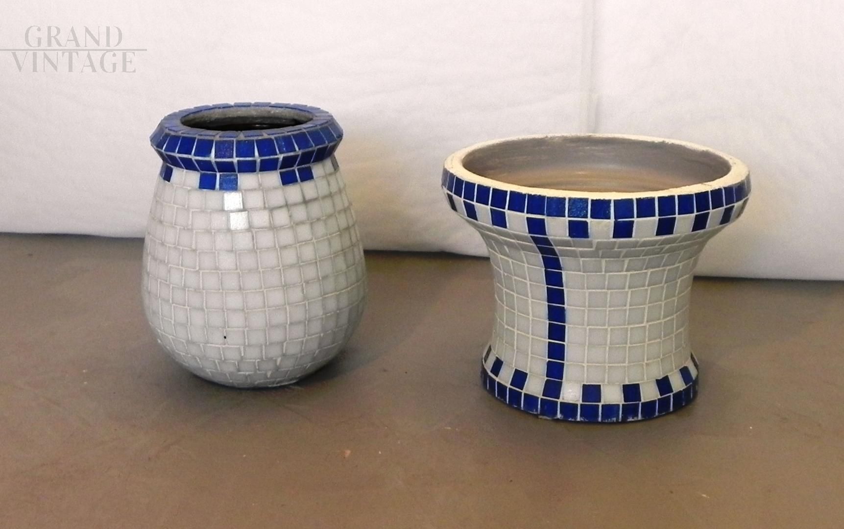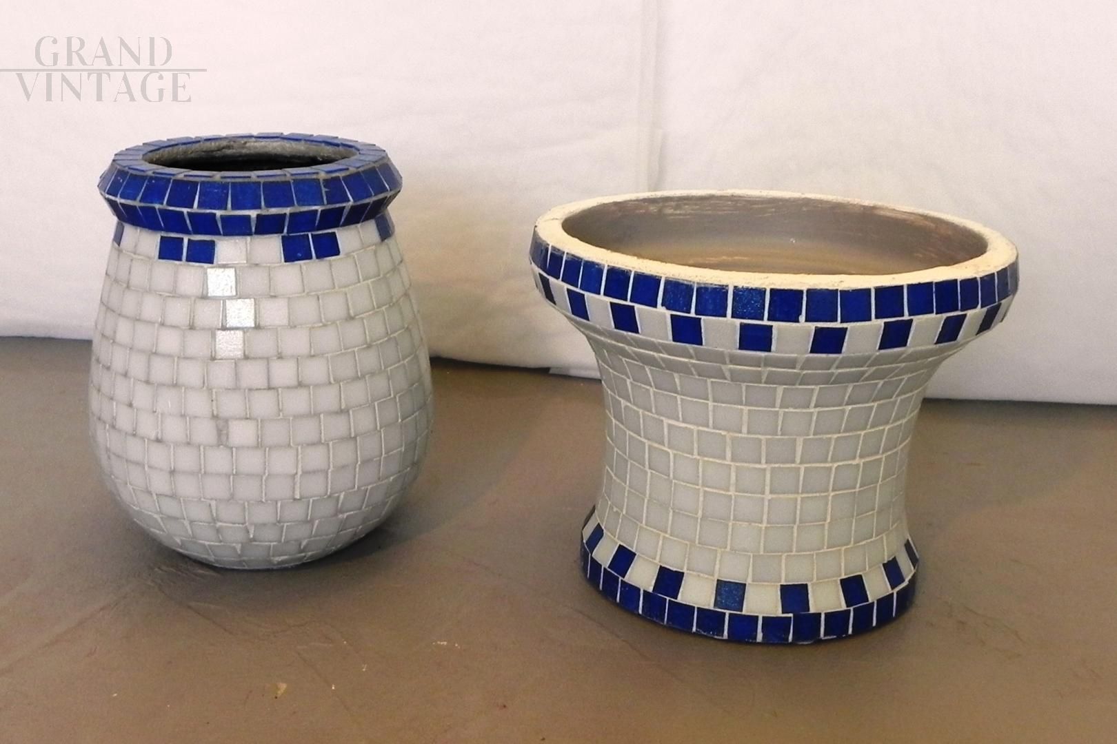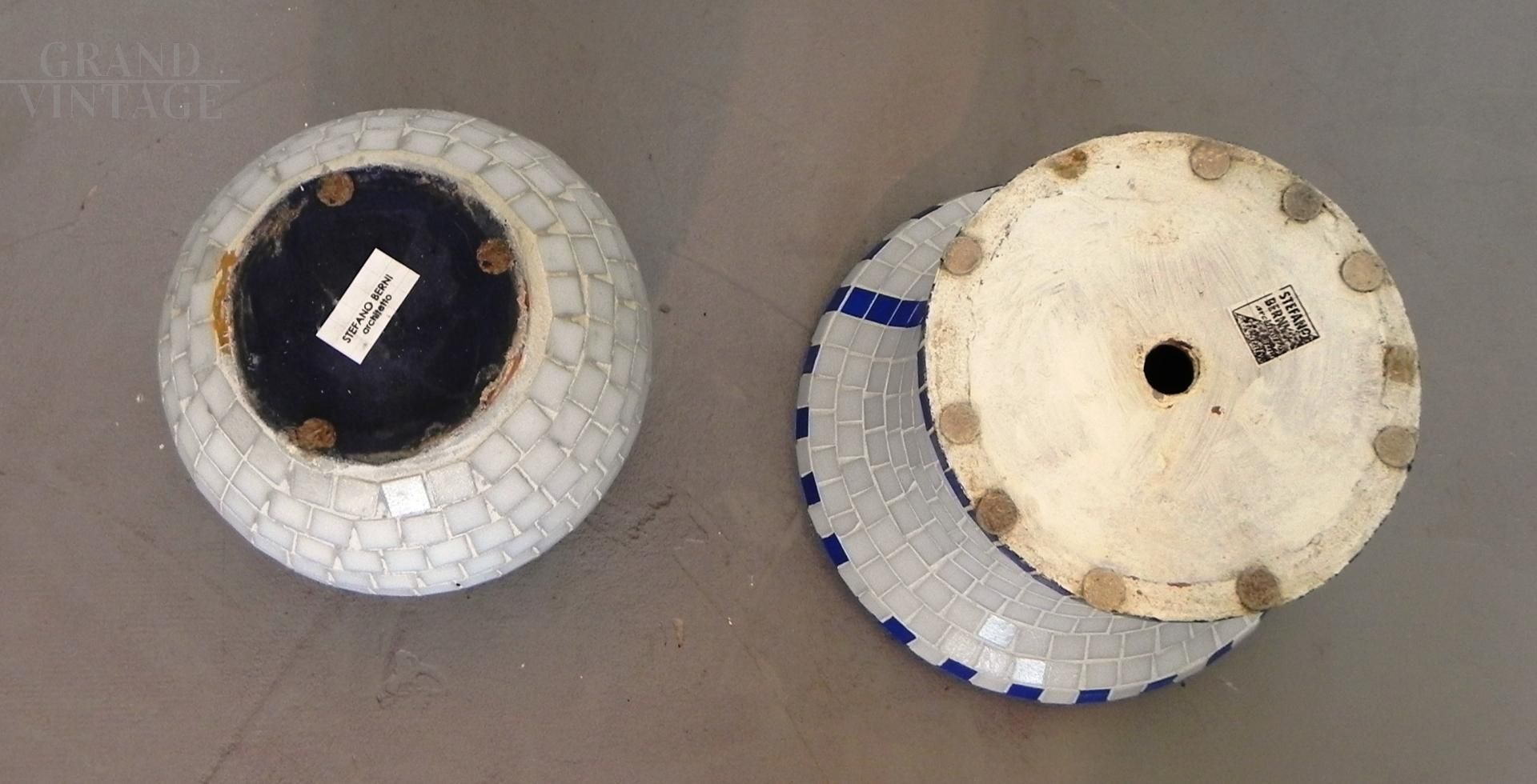 Pair of terracotta vases, covered in real Bisazza mosaic, 1990s, made by the architect Stefano Berni. The pots can be used to contain plants, even for outdoor use, by inserting a saucer.