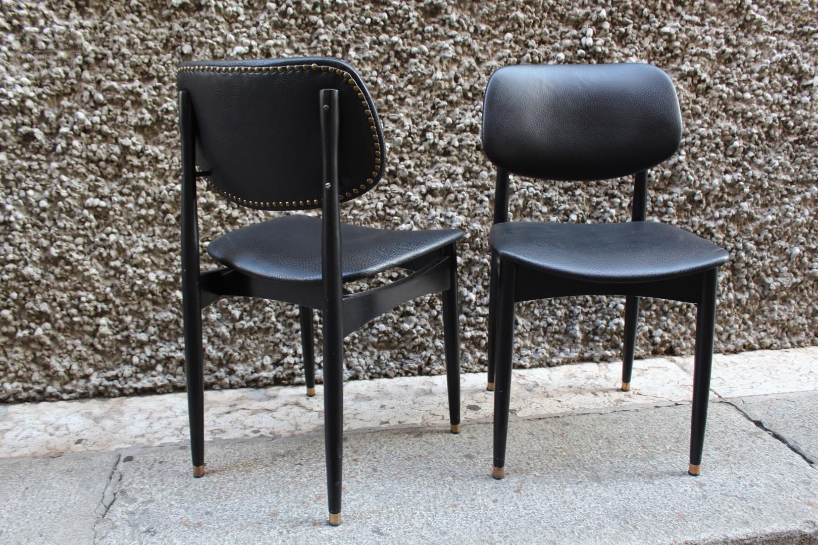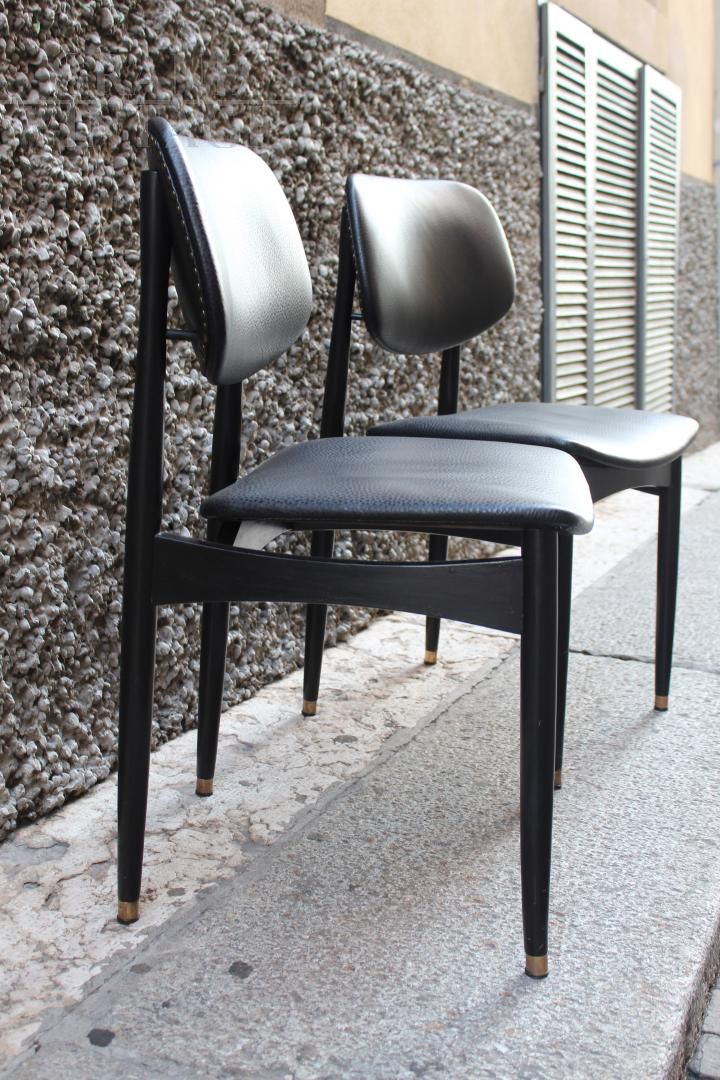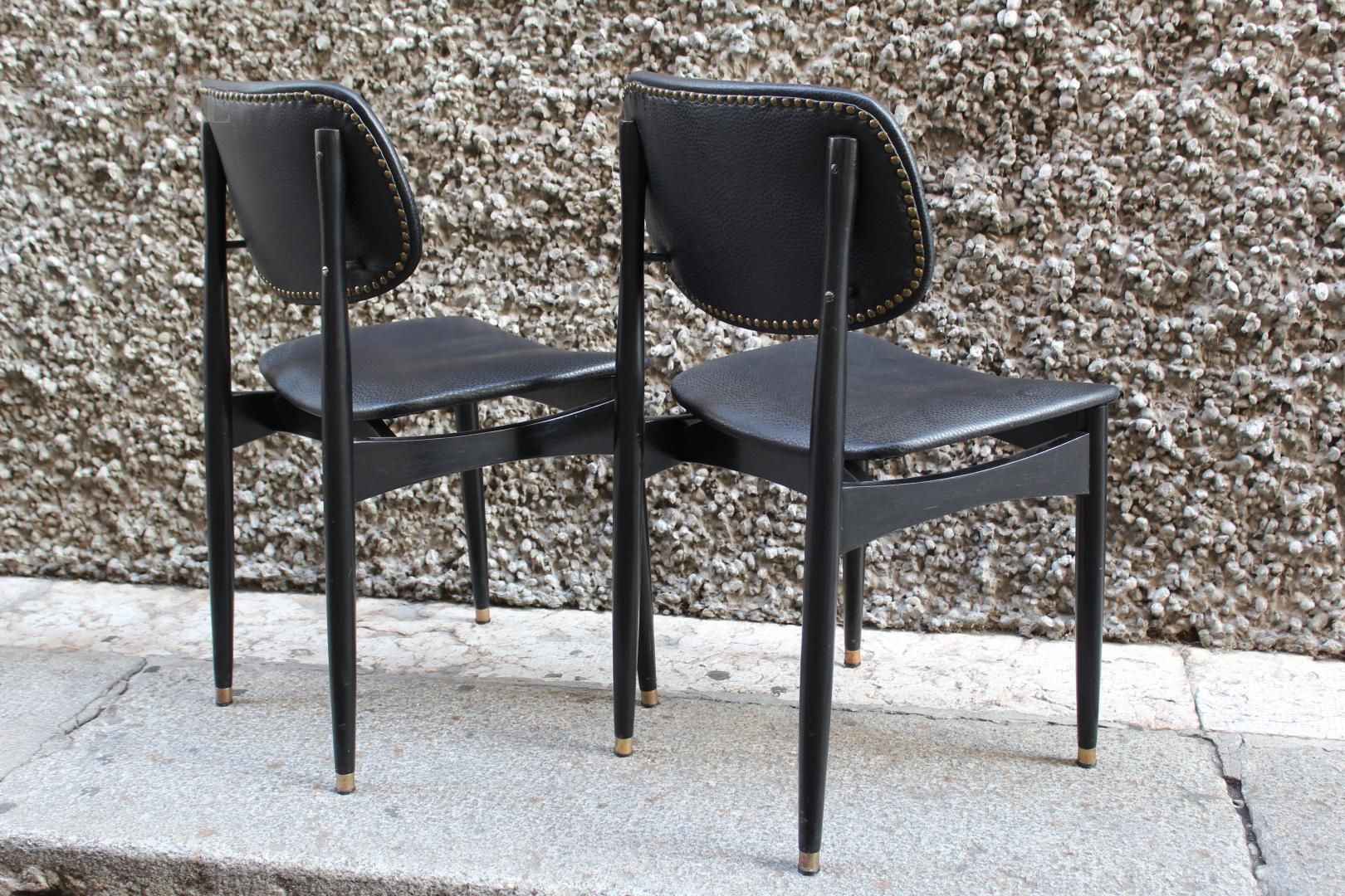 Pair of vintage Cassina office chairs in black leather, Italy, 1950s, reupholstered in high quality genuine black leather, in excellent condition. These are truly unique pieces.