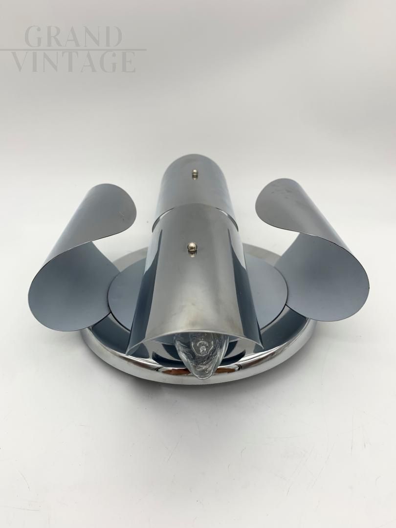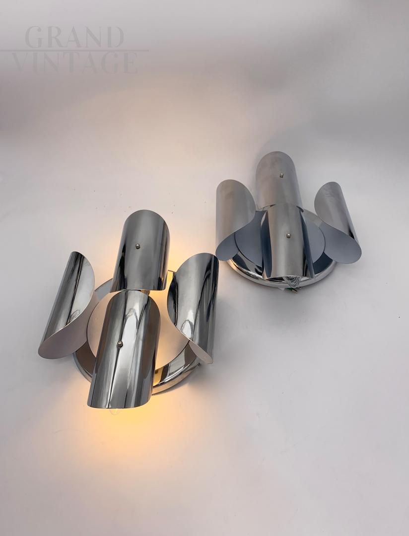 Pair of chromed wall lights attributed to Reggiani, 1970s design