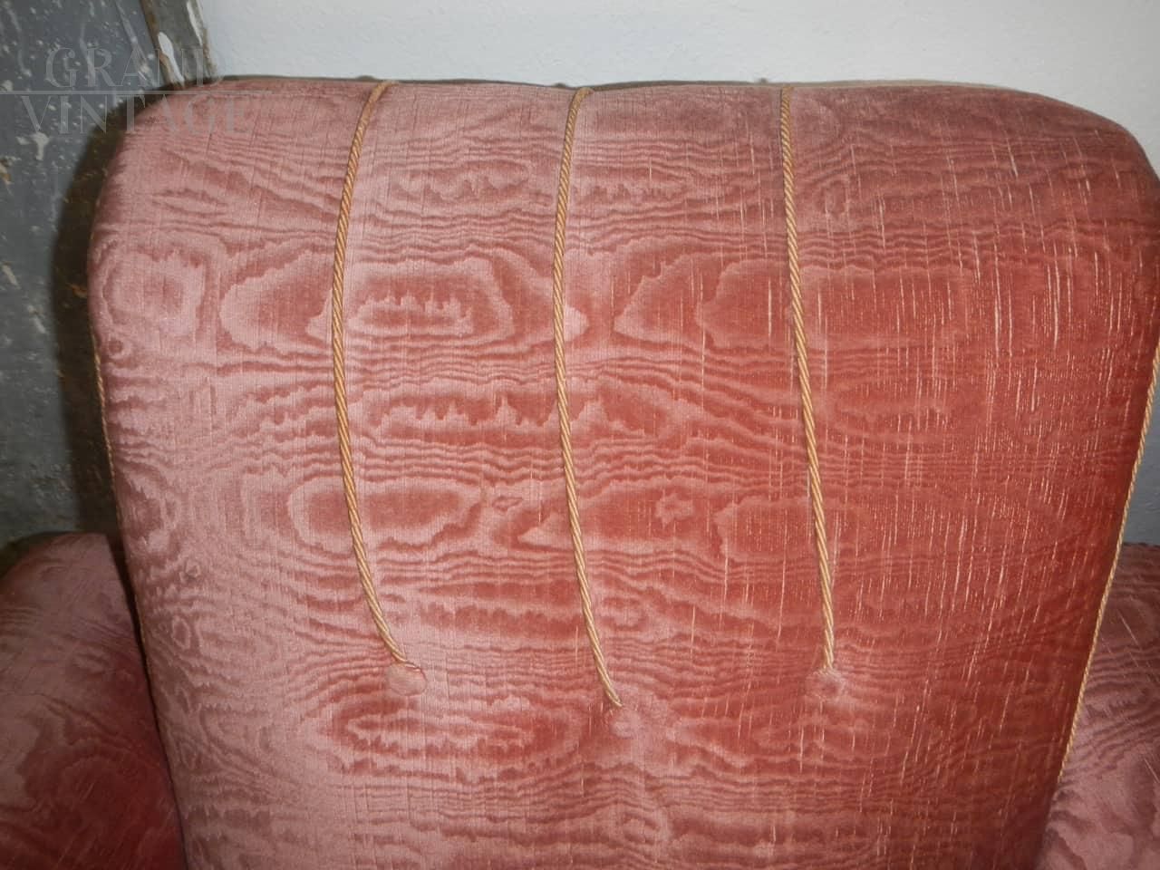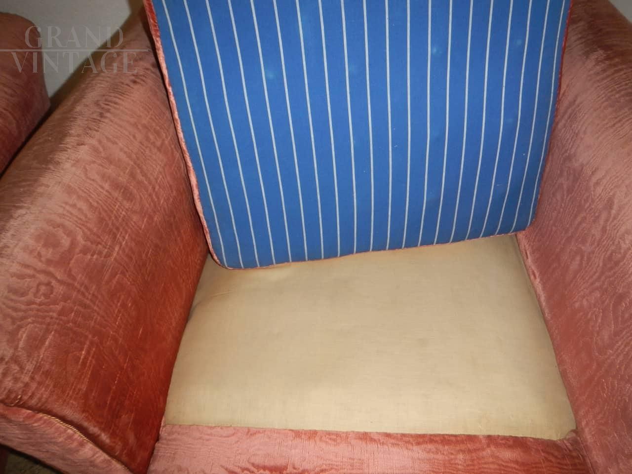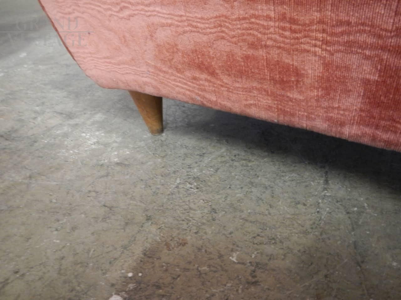 Pair of 1950s vintage armchairs in velvet with wooden legs, in good condition, with seat springs to be reviewed.