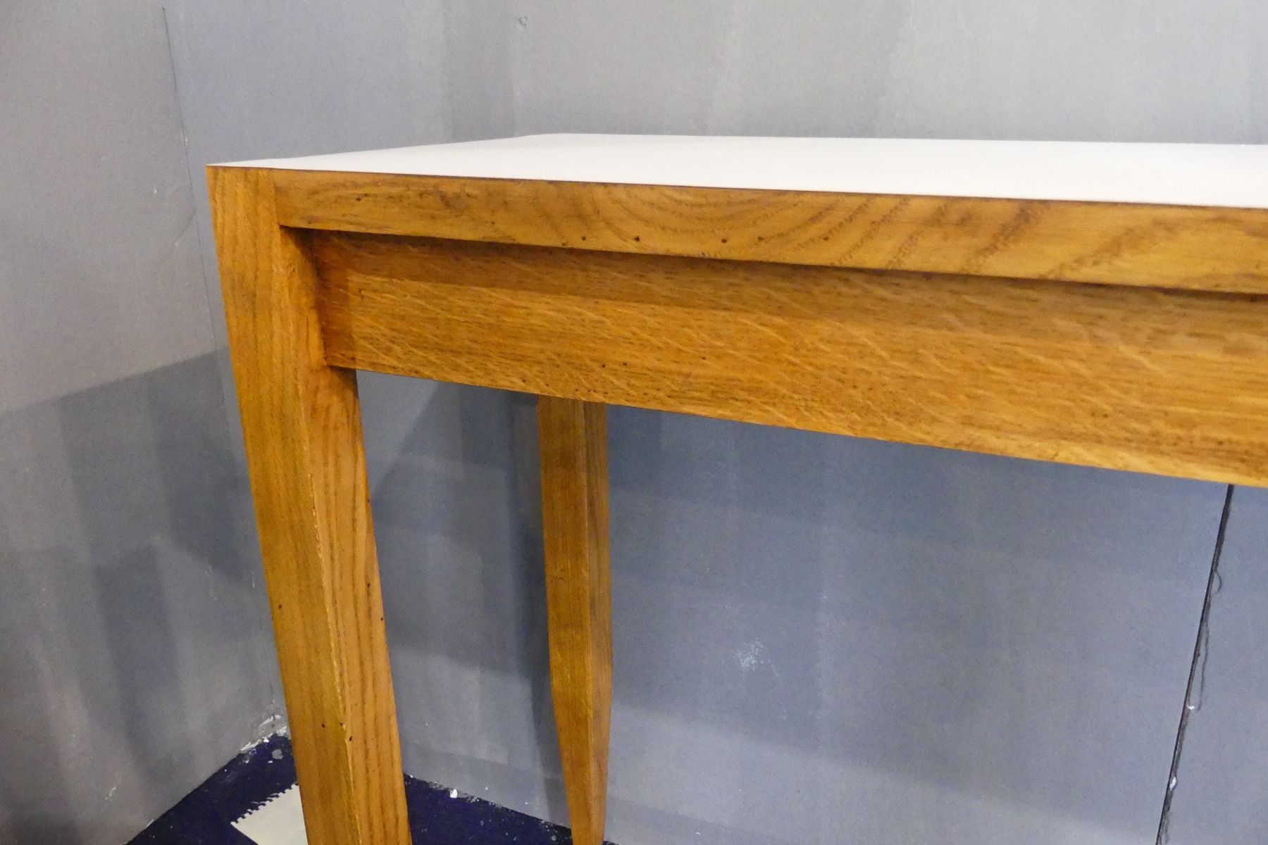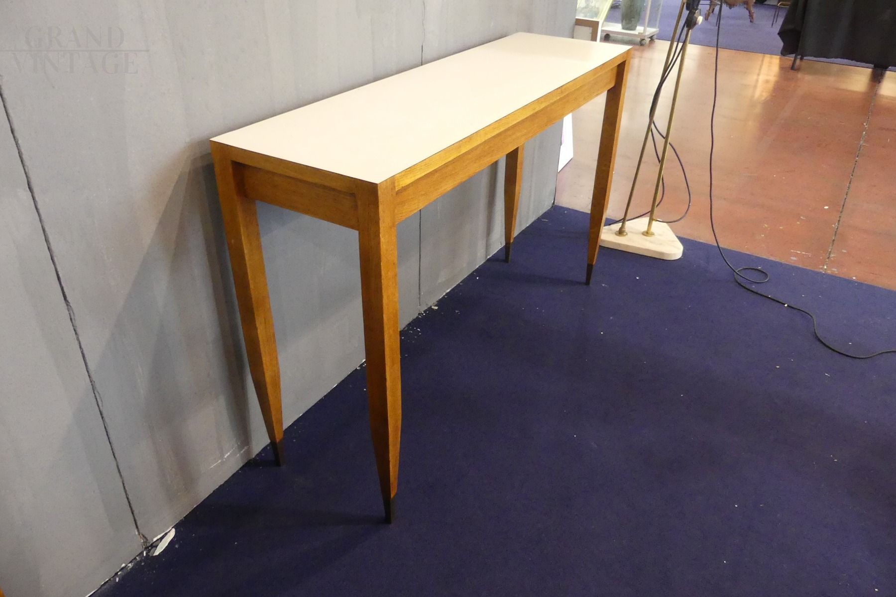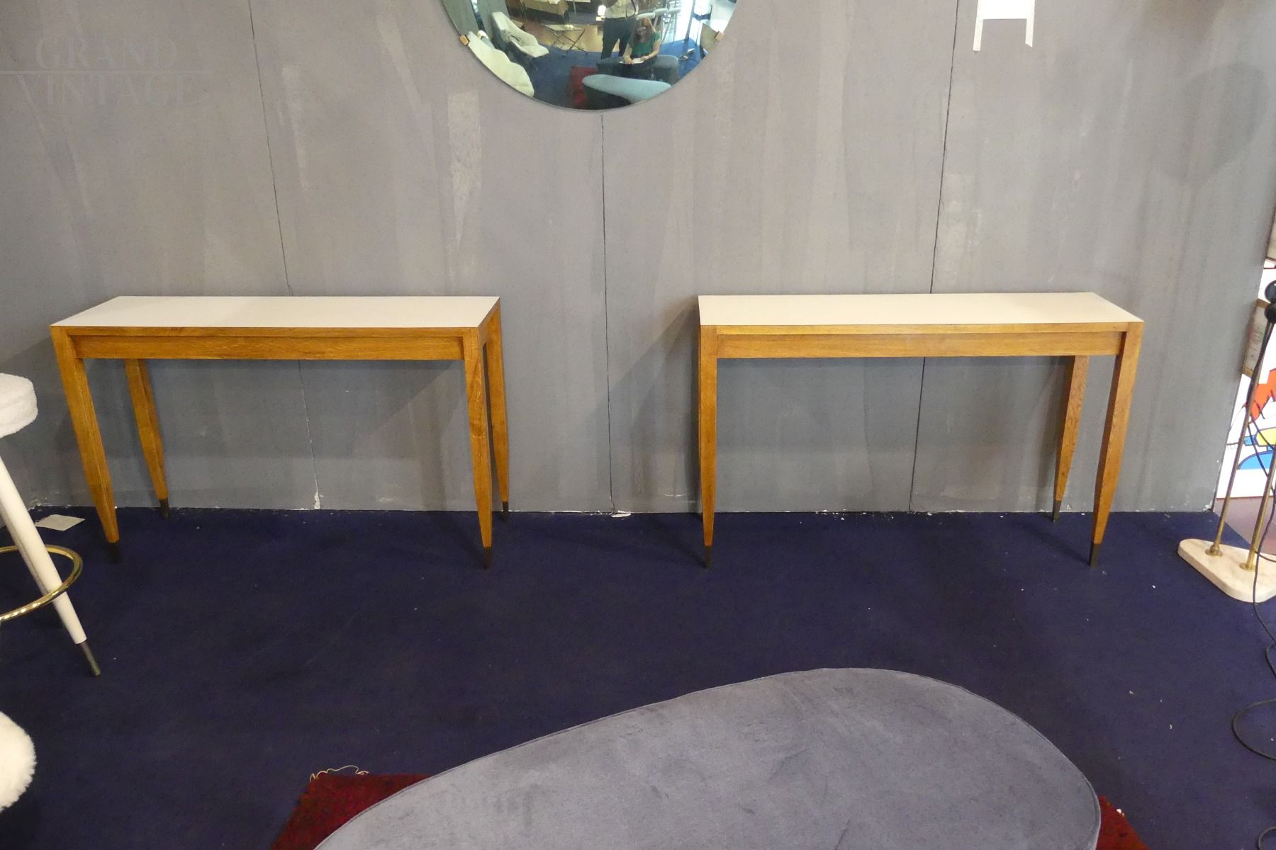 Pair of consoles designed by Gio Ponti in walnut with formica top