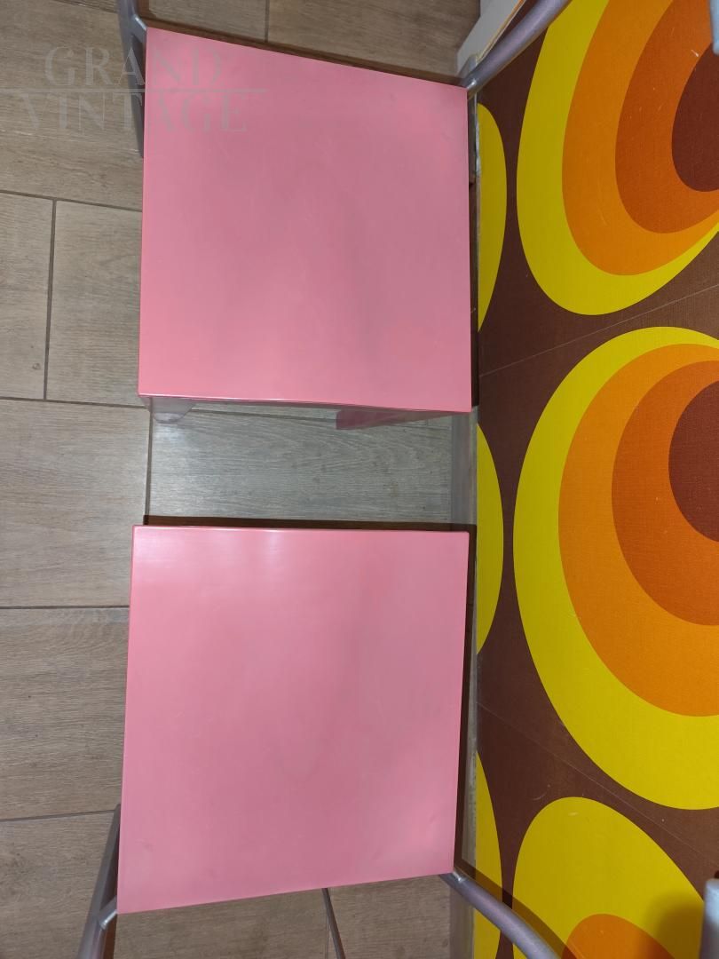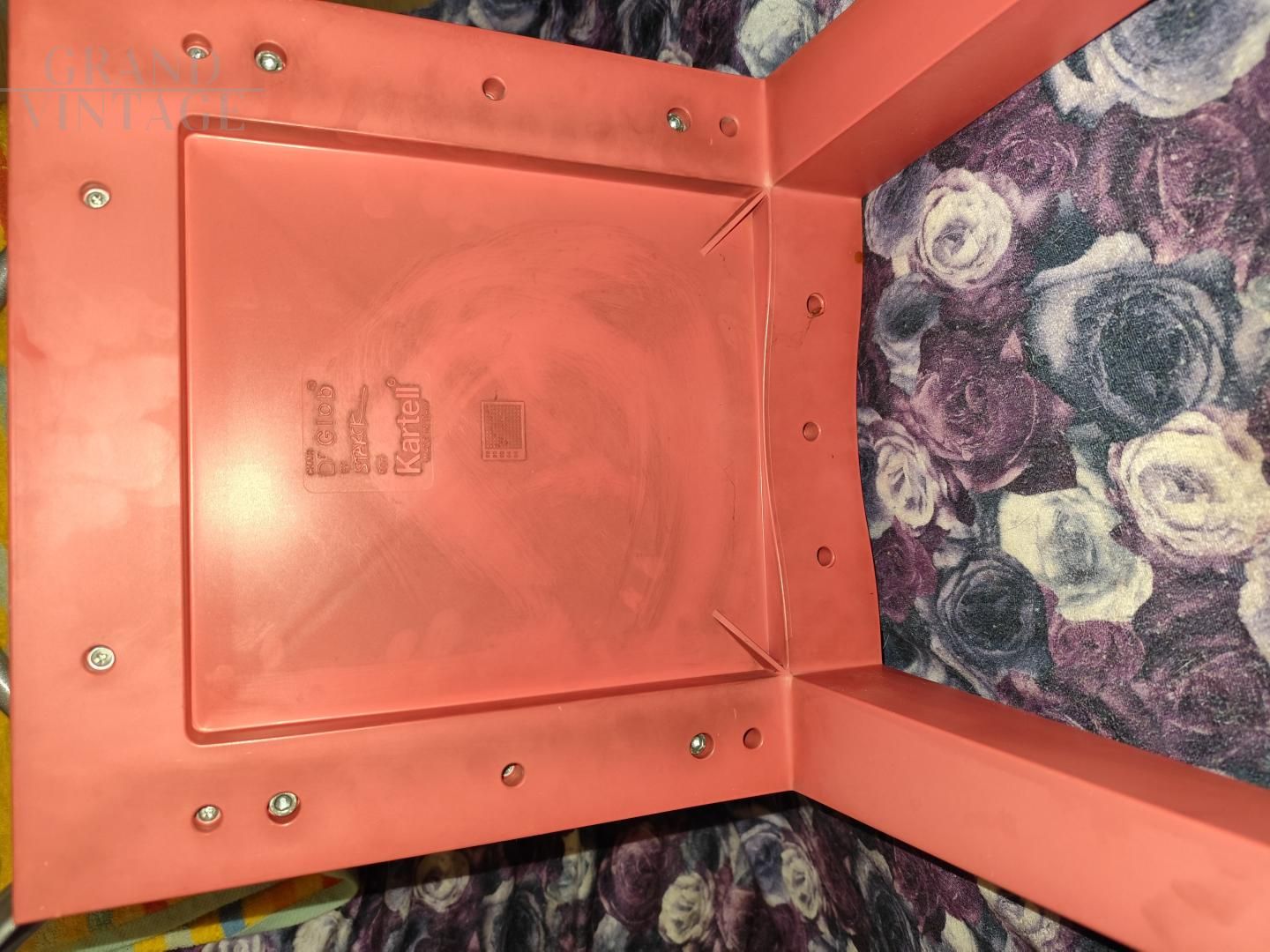 Pair of vintage Dr. Glob chairs, design by Philippe Starck for Kartell, in salmon pink plastic and steel, original from the 1970s. In good general condition, they show natural signs of aging, such as small lines on the seat.
