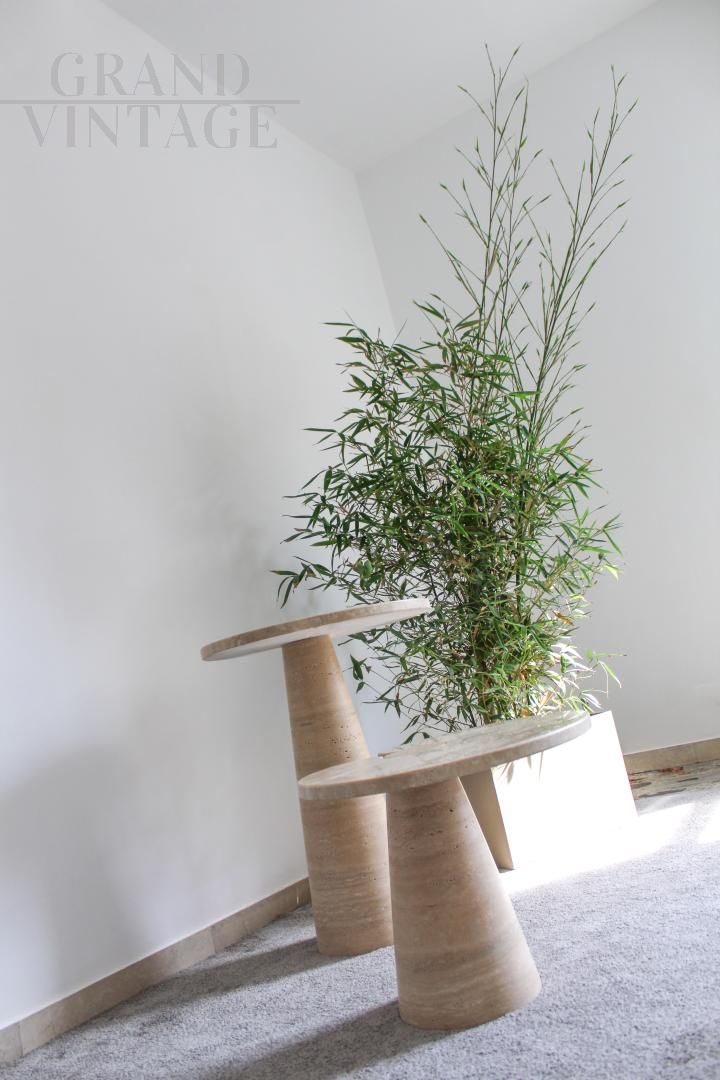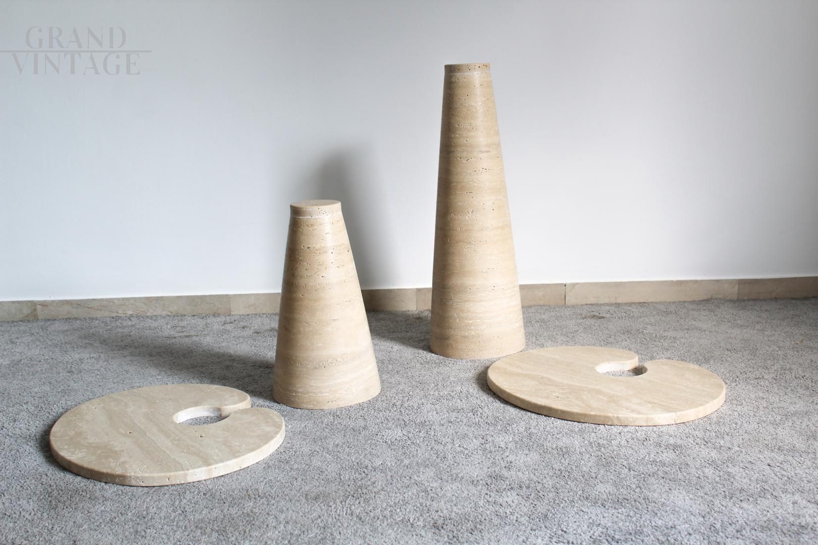 Pair of Eros series coffee tables by Angelo Mangiarotti in travertine marble