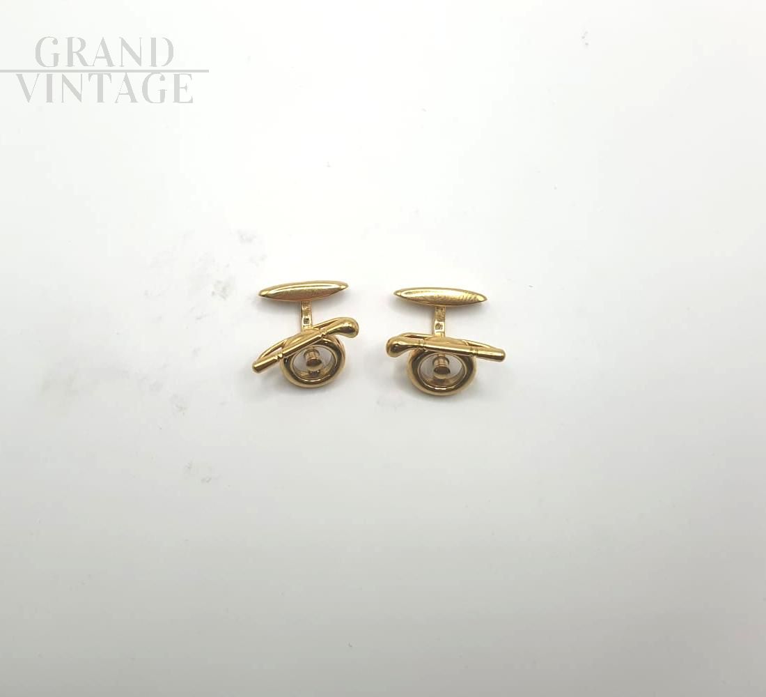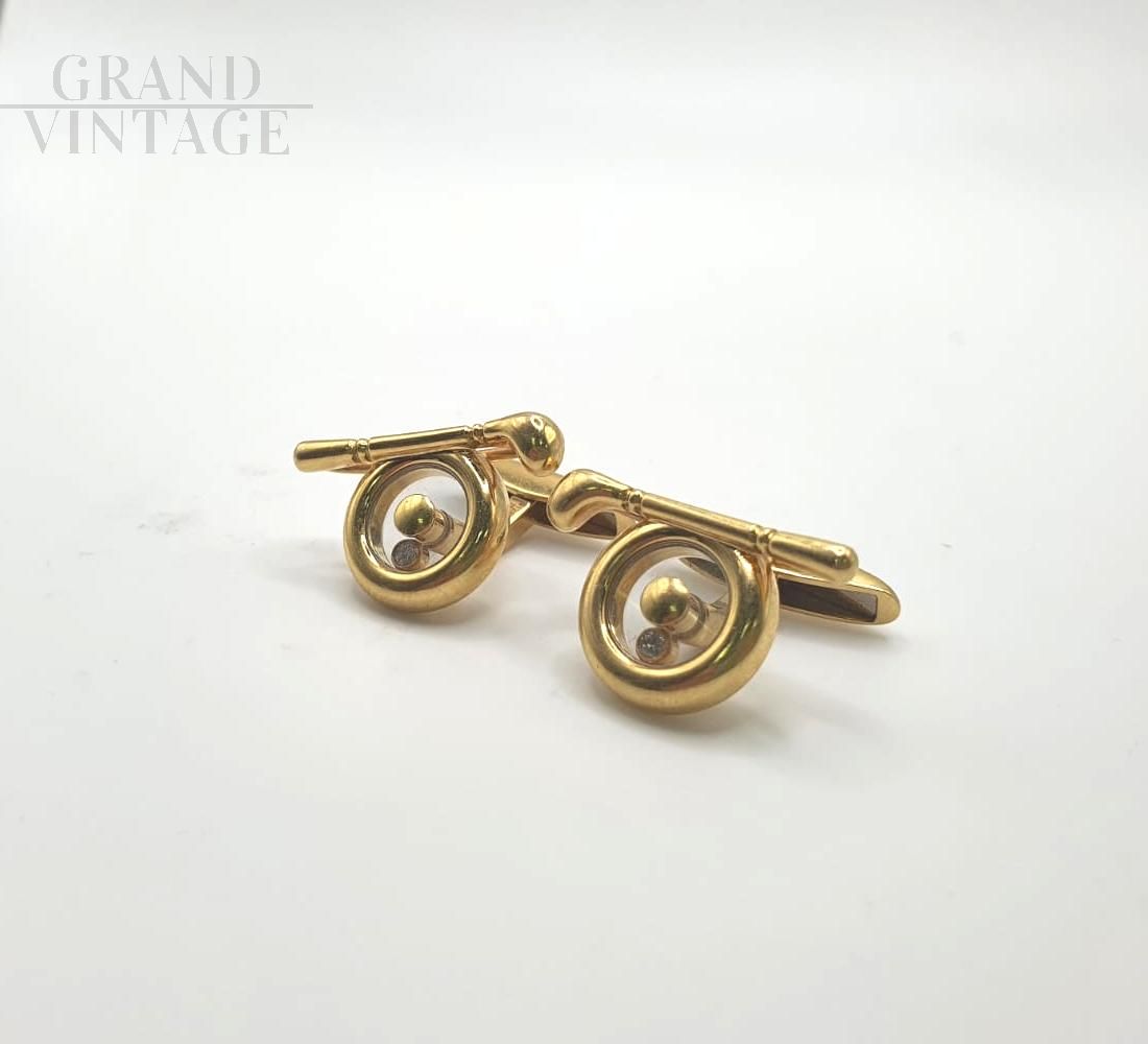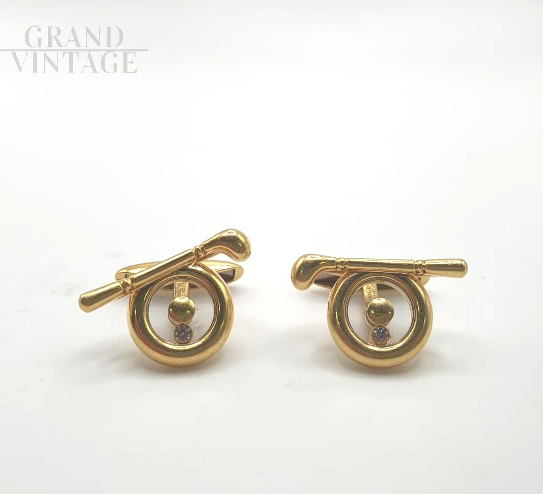 Beautiful original Chopard Happy Diamonds Gold Golf Spinner men's cufflinks in the shape of golf clubs in yellow gold with internal diamonds of 0.05 ct each.