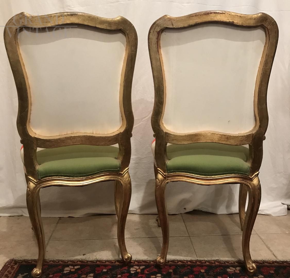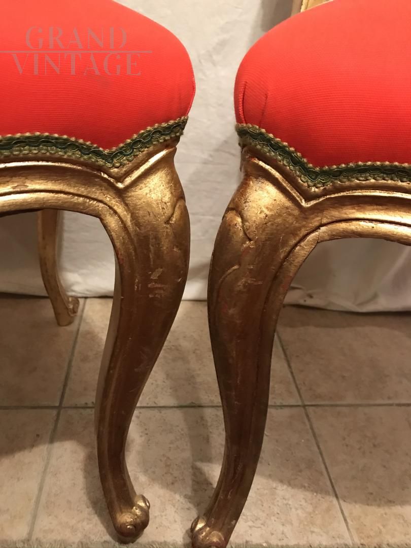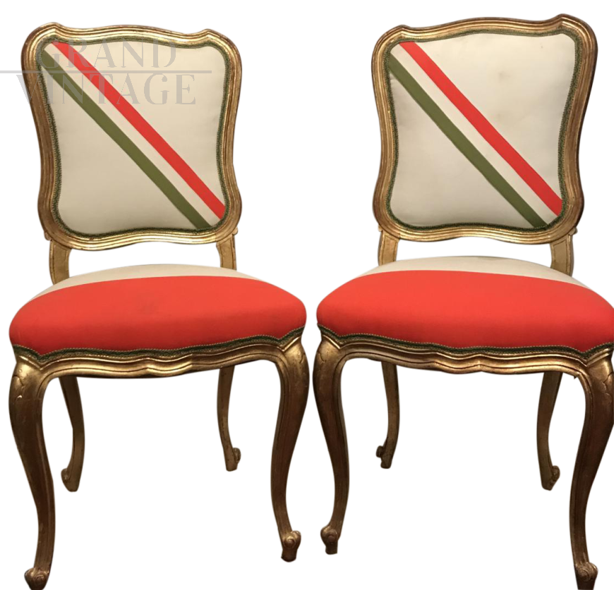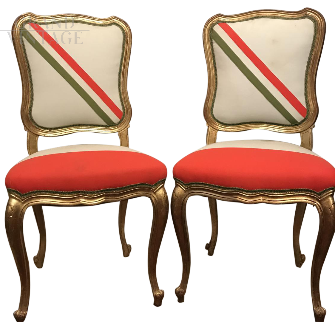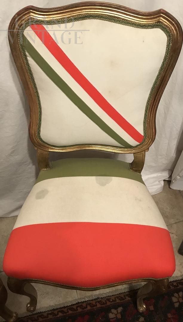 Baroque chairs upholstered in the colors of the Italian flag on the occasion of the 150th anniversary of the unification of Italy.