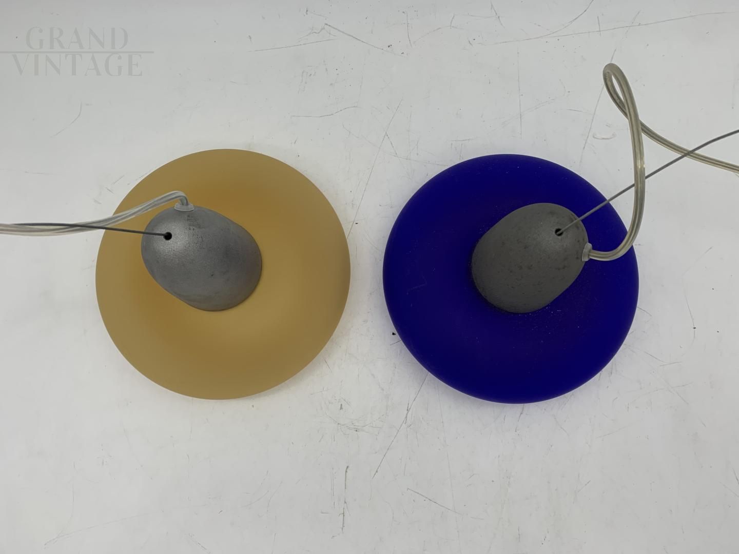 Pair of ITre pendant lights in blue and yellow Murano glass