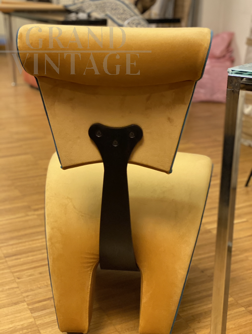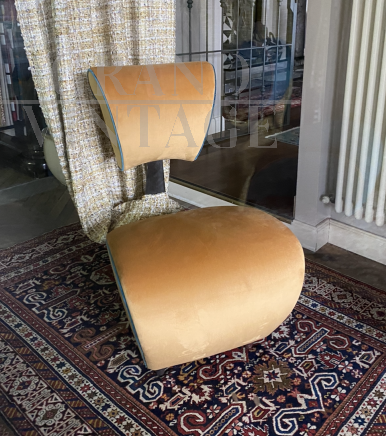 Pair of Jordan Mozer armchairs in yellow velvet from the 70s