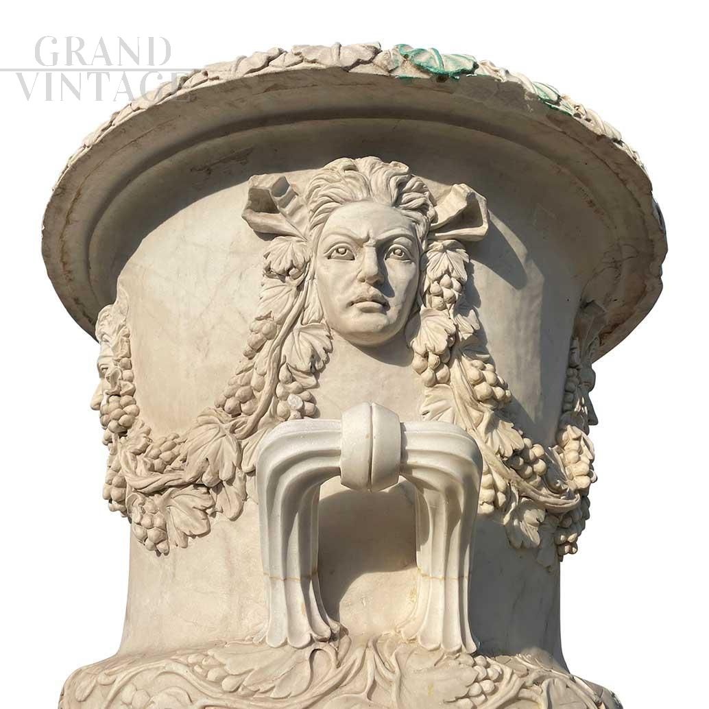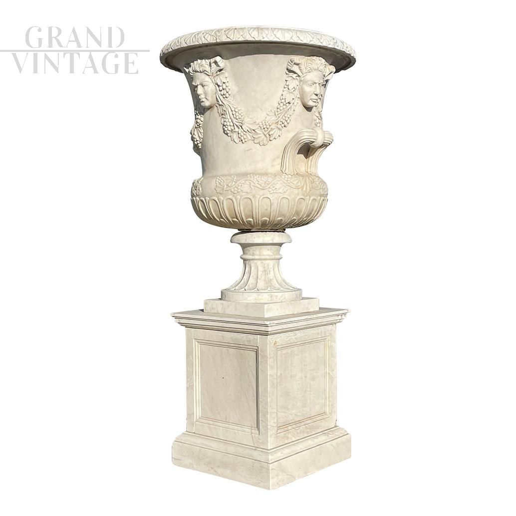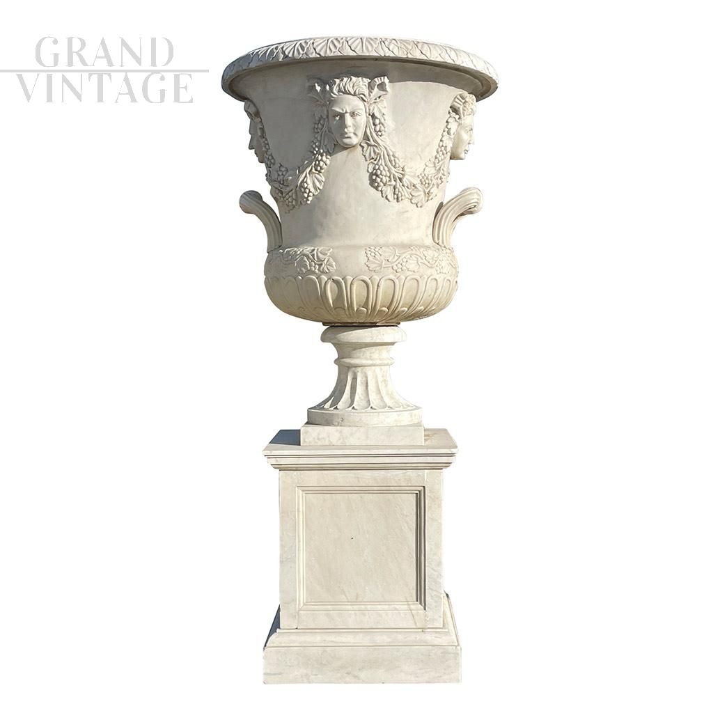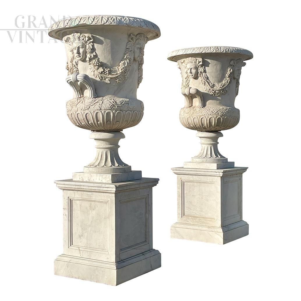 Pair of large antique-style white marble garden vases, made in the 20th century.
