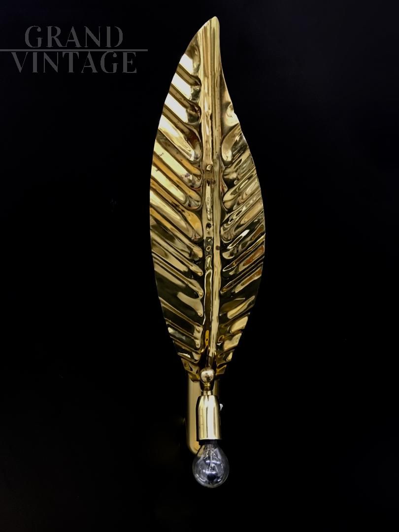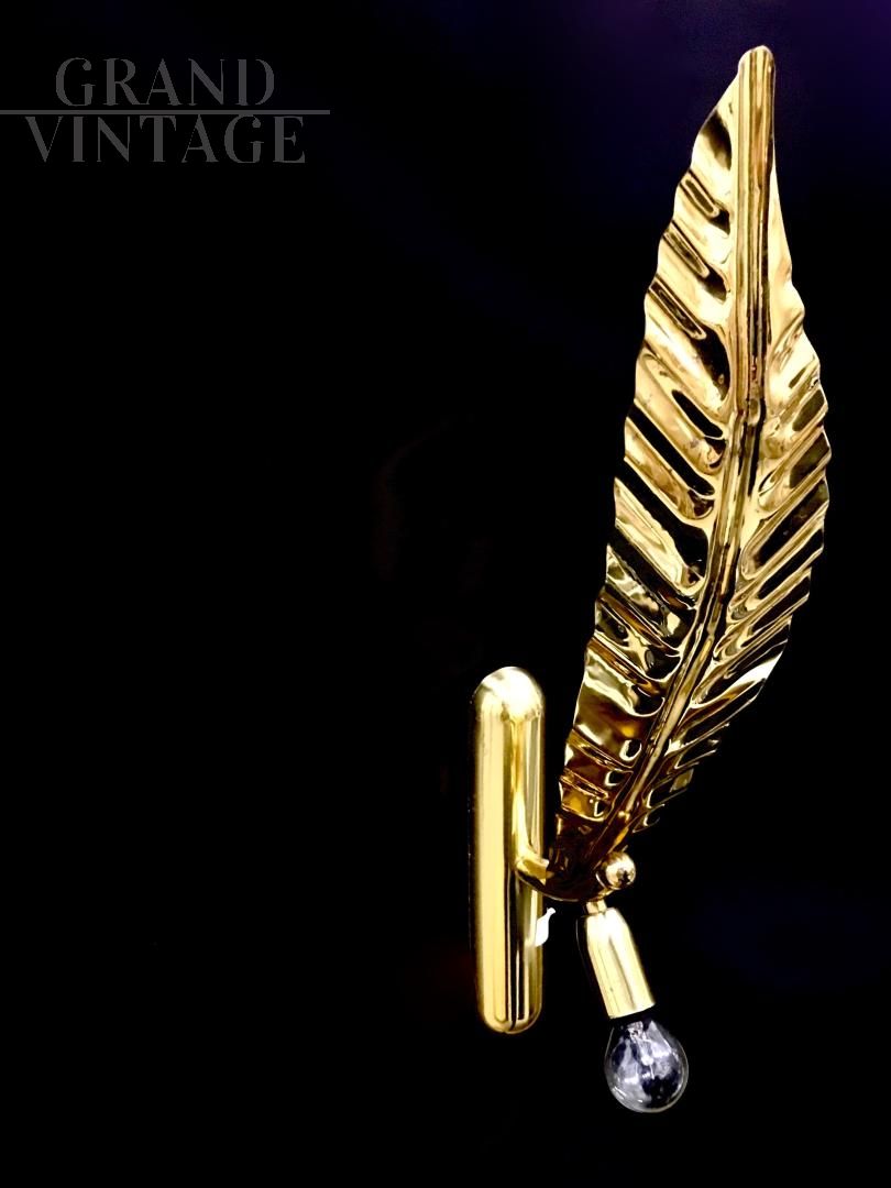 Pair of leaf-shaped applique wall lights in gilded metal by the Barbi firm, Tommaso Barbi, circa 1970s. The wall lights are in excellent condition, totally original with a completely new electrical system, connection for a single E14 type bulb also suitable for the use of LED bulbs. Perfect to combine with classic or modern furnishings.