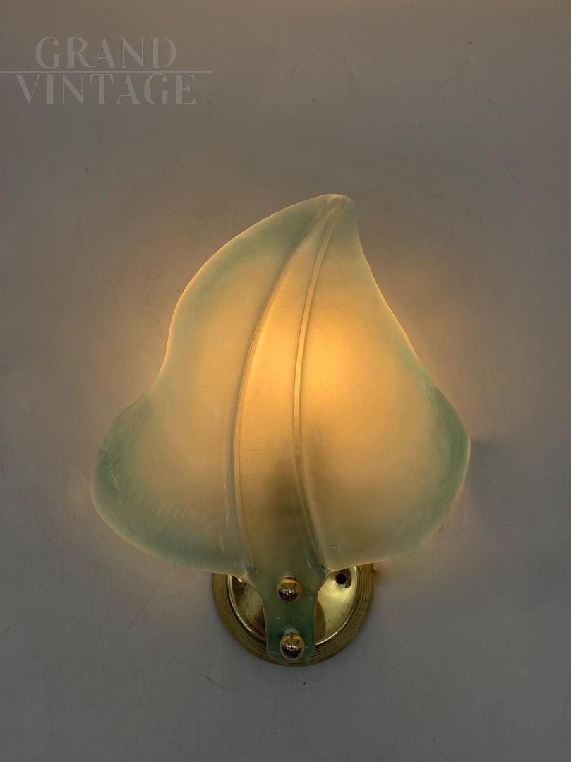 Pair of light blue Murano glass leaf-shaped wall lights, attr. Seguso