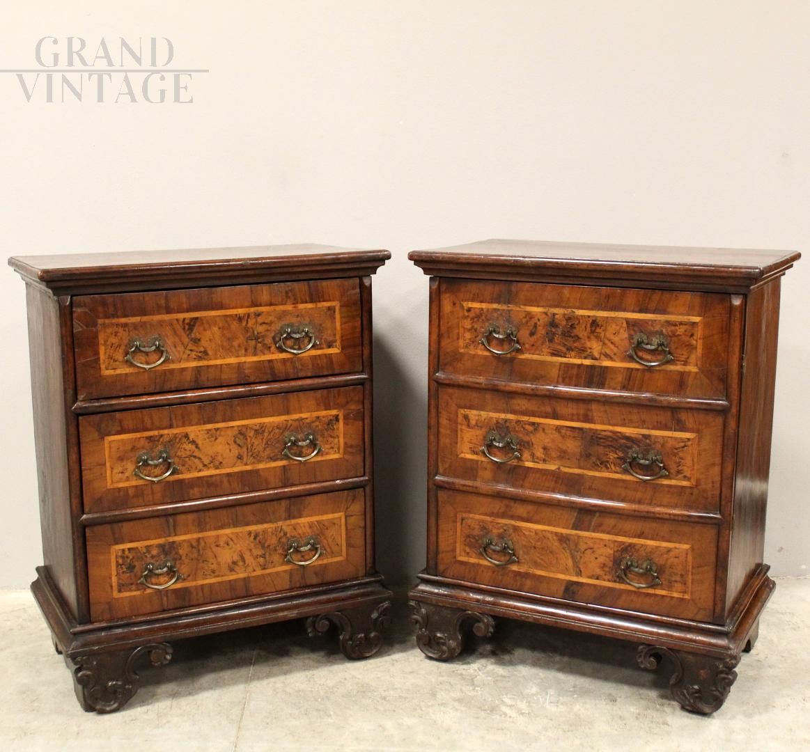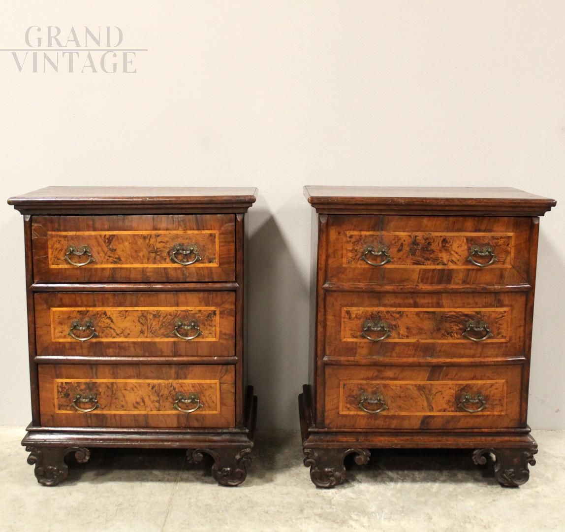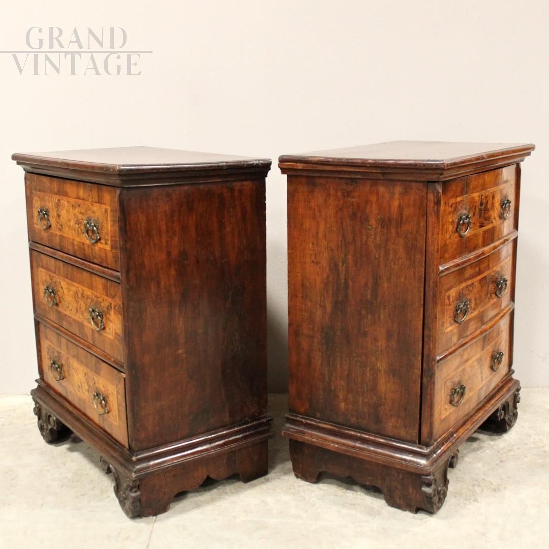 Pair of Louis XV walnut bedside tables, 18th century Italy