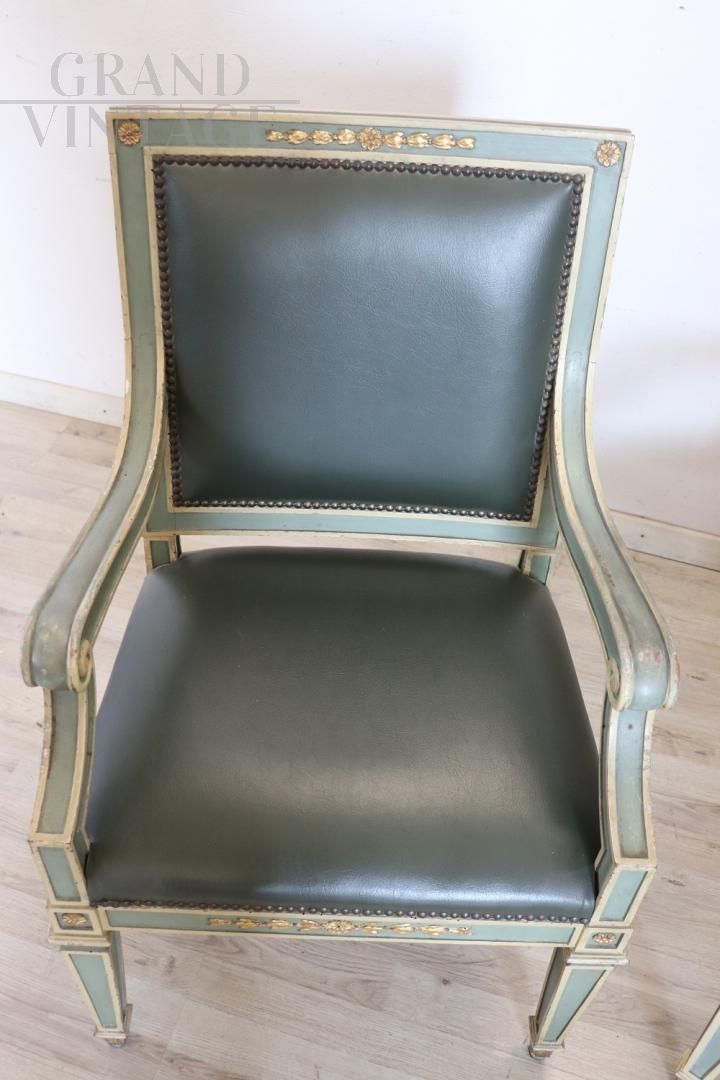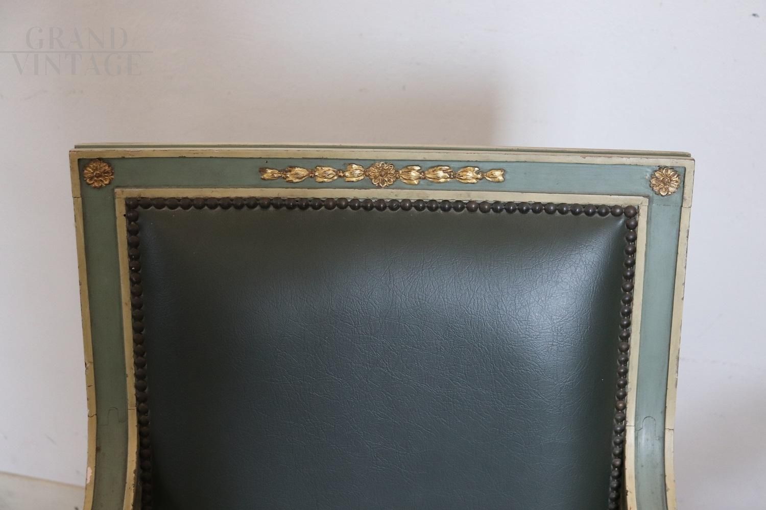 Pair of Louis XVI antique style lacquered armchairs in green skai
