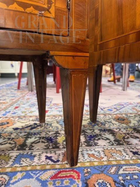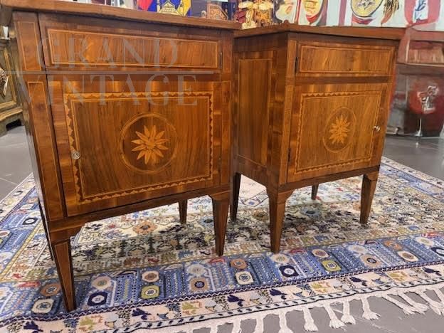 Pair of mid-18th century bedside tables with neoclassical inlays