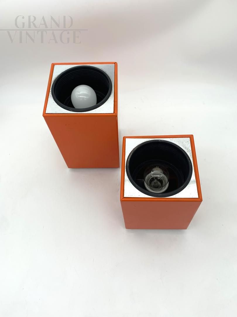 Pair of orange Athena cube wall lights, 1970s Italian design