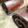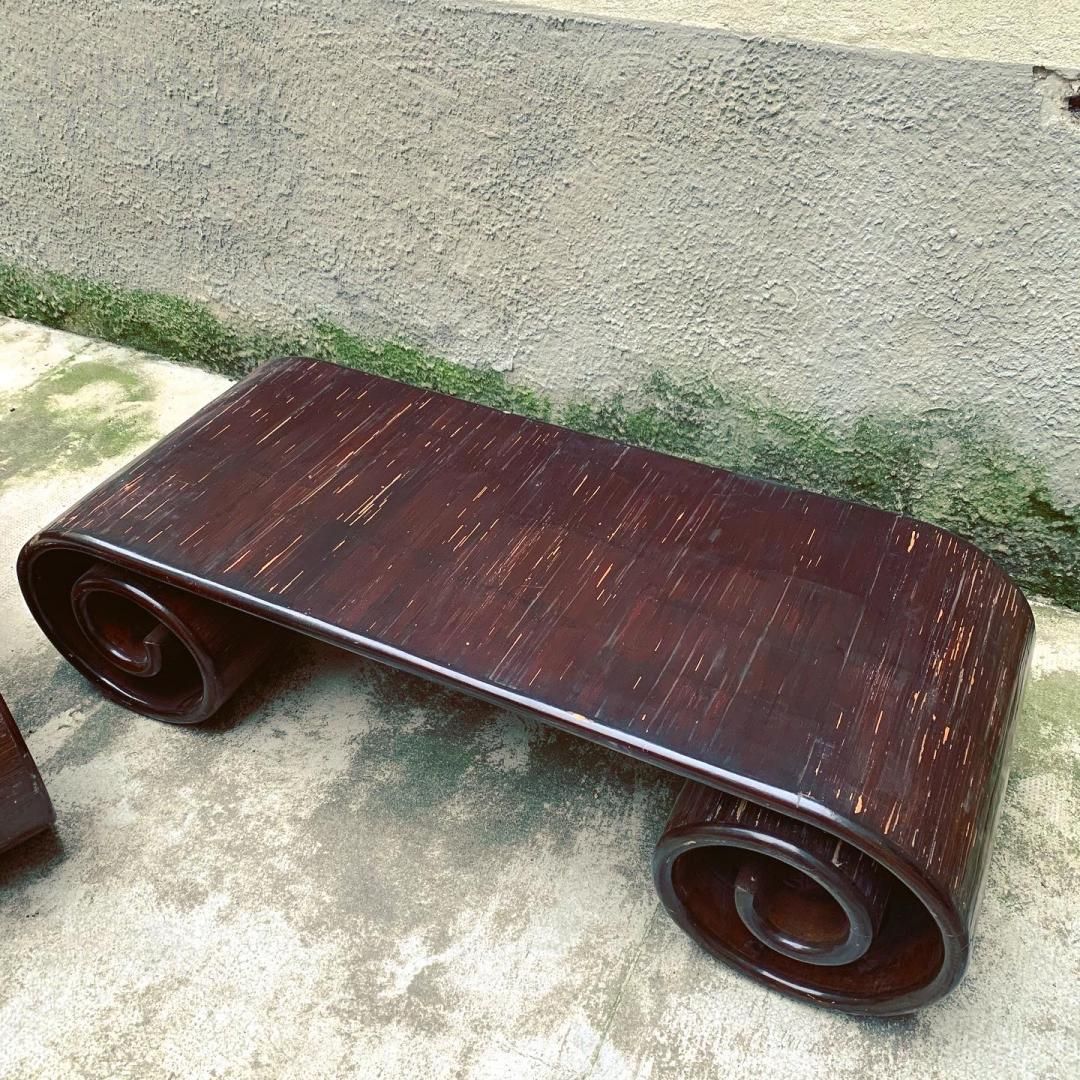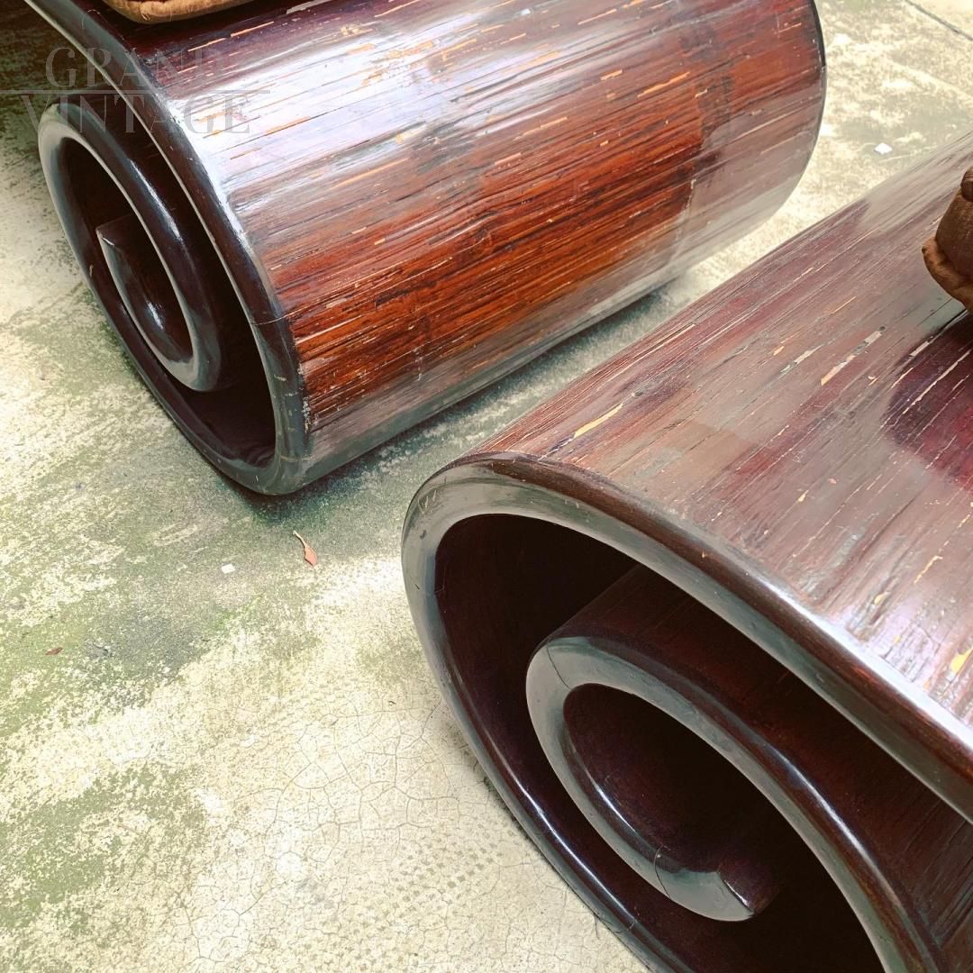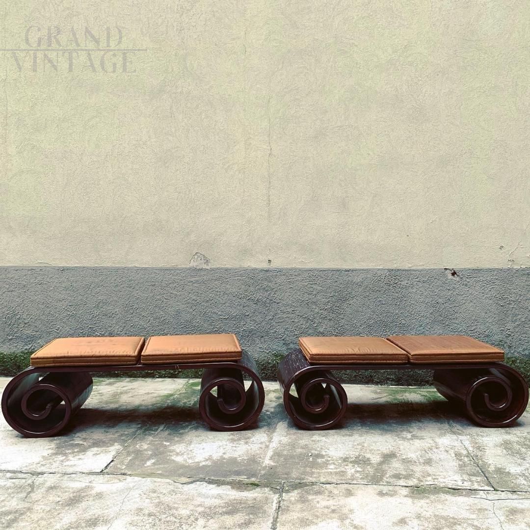 Pair of orientalist benches with two brown silk cushions. These specimens were sold by Christie's in London in 2012.