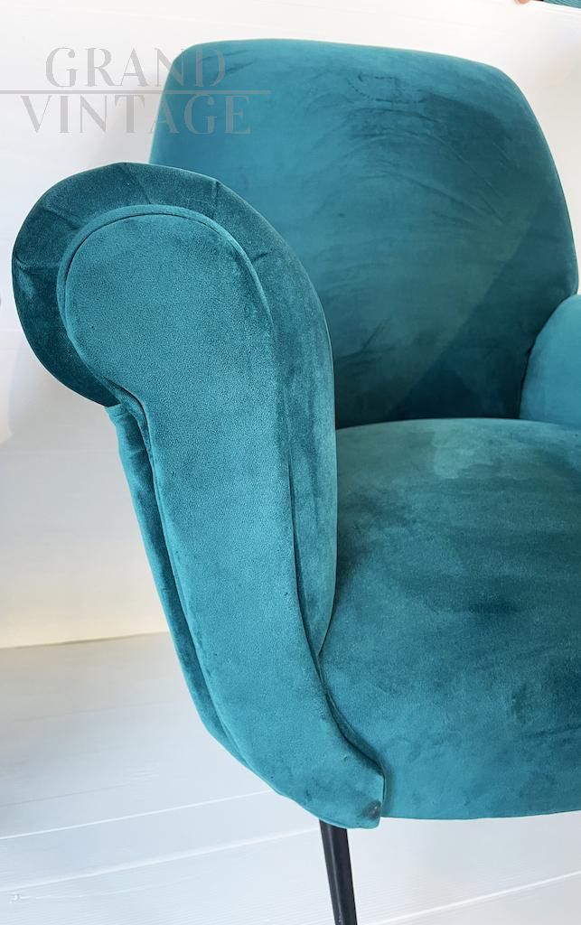 Pair of petrol blue 1950s armchairs in Gigi Radice style