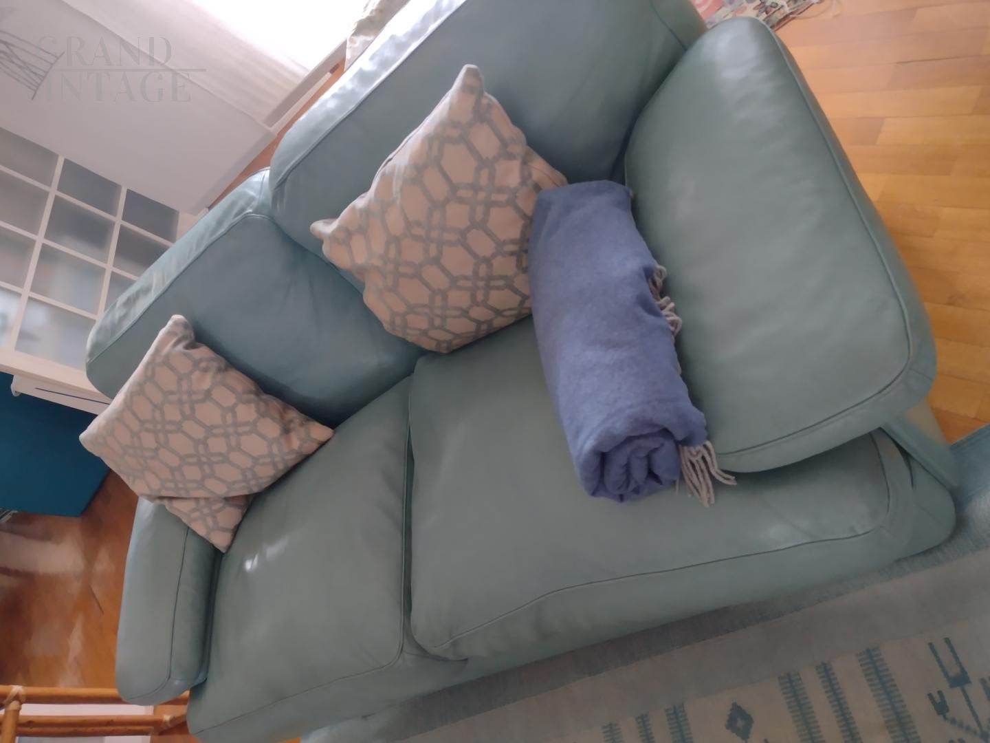 Pair of Poltrona Frau sofas in sky blue leather