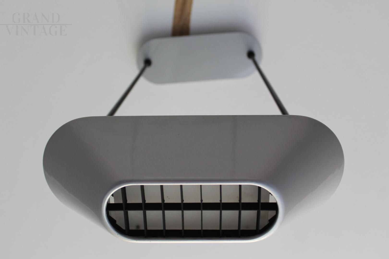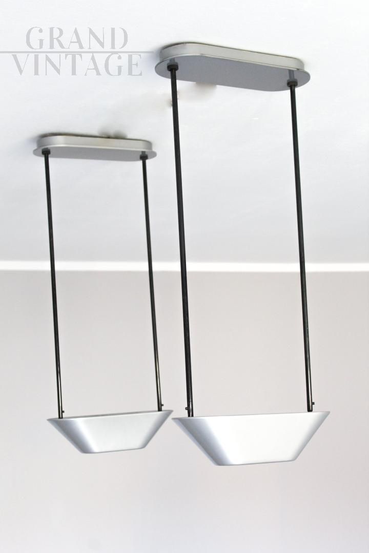 Pair of Artemide Sidone suspension lamps by designers De Pas, D'urbino and Lomazzi, Italian design from the 1980s, with silver lacquered metal structure and height-adjustable stems.