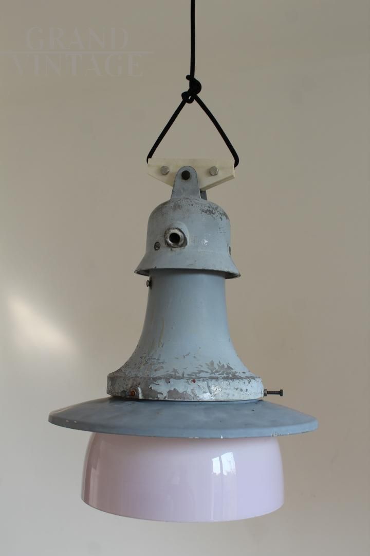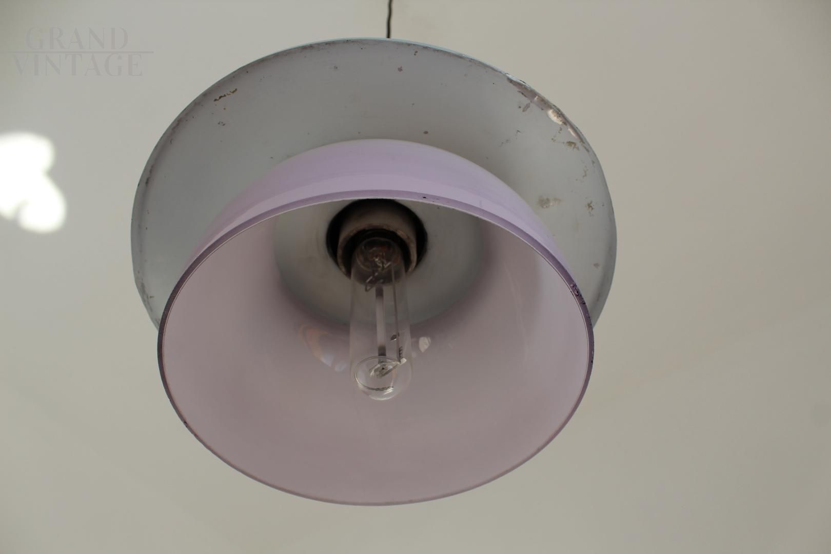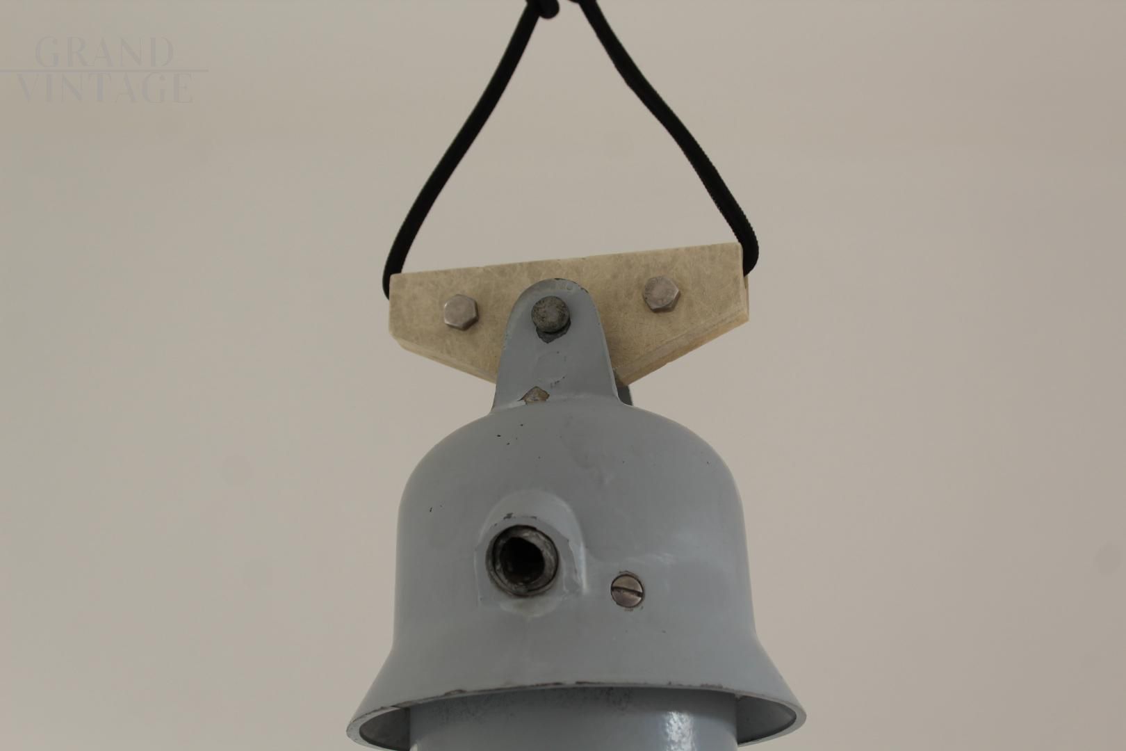 Pair of suspension street lamps, Italy 70s, with grey lacquered aluminum and alloy structure, easily dismountable, the surface can be scratched and re-lacquered in another color. The electrical system can be easily modified.