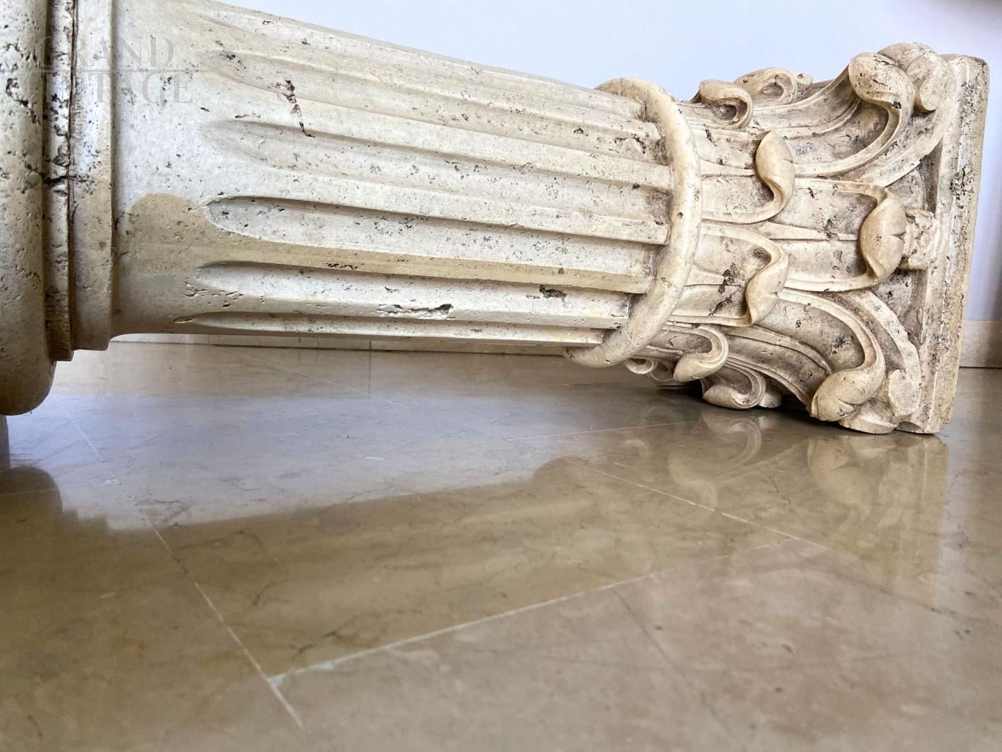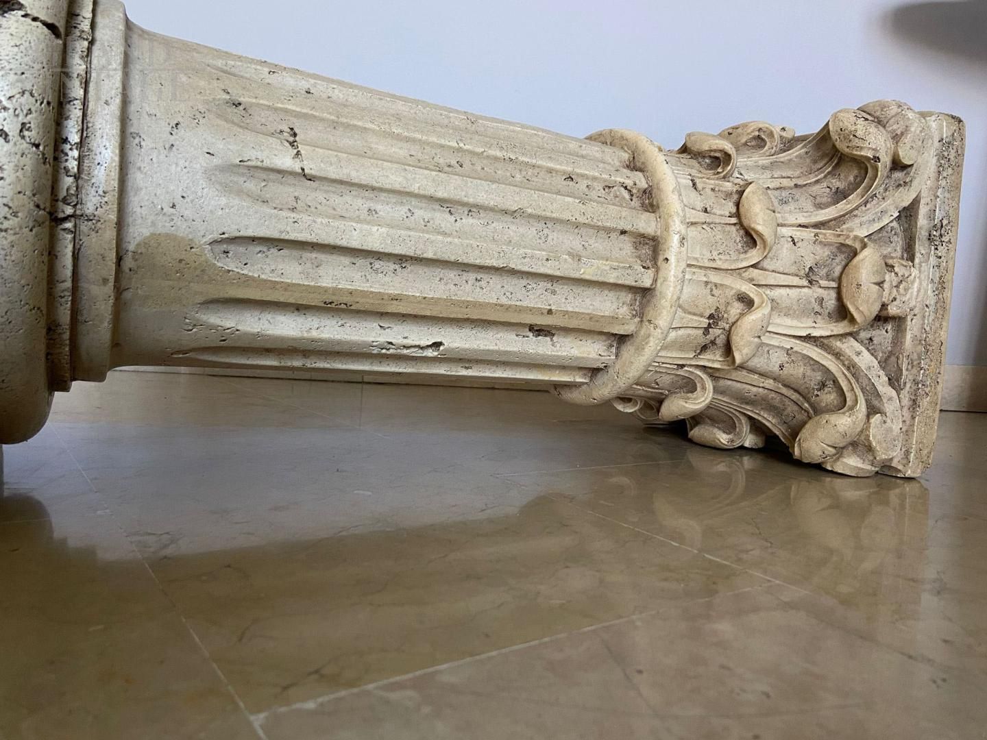 Pair of Travertine marble columns with Corinthian style capitals, Italy 1940s