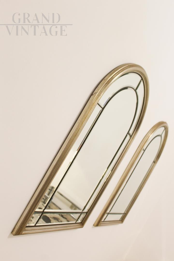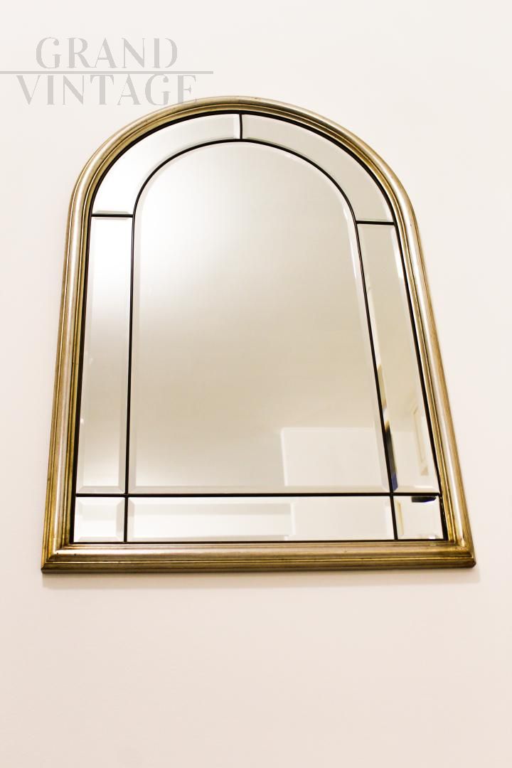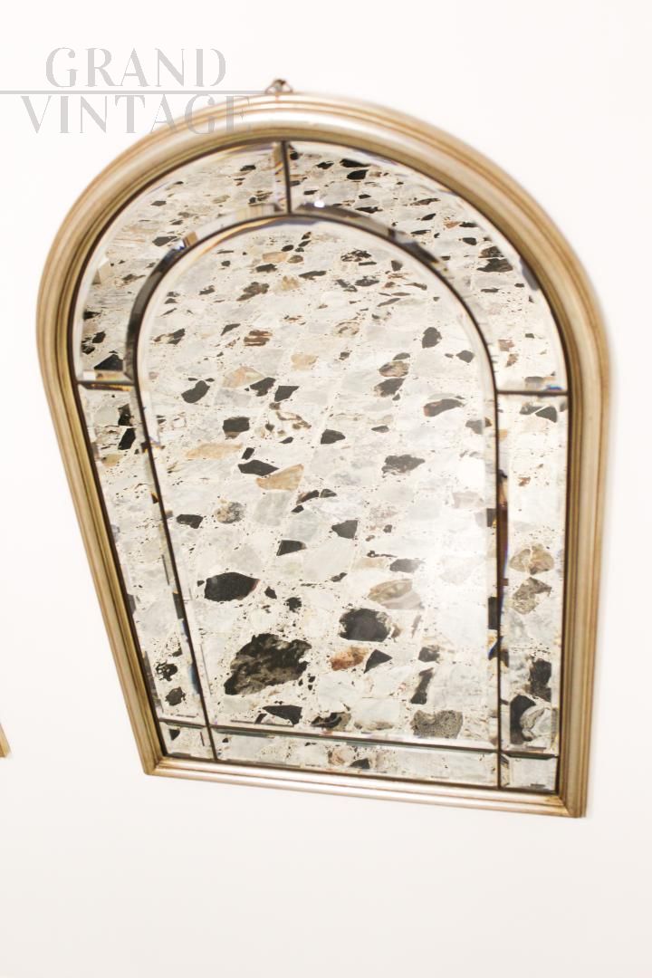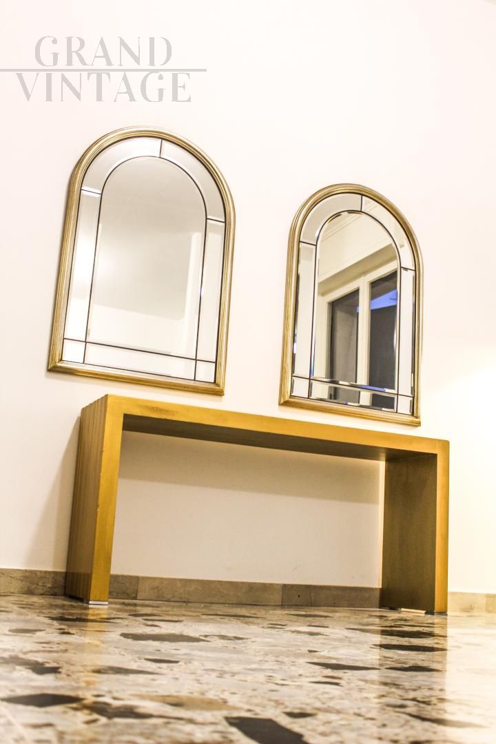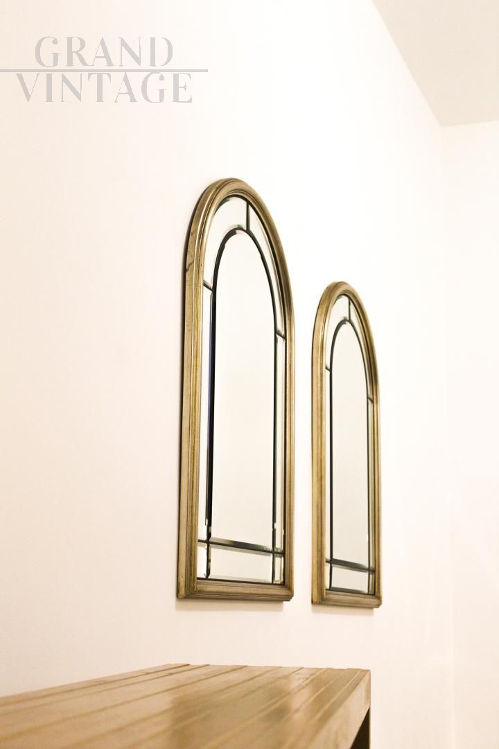 Pair of vintage bevelled mirrors in brass and gilded wood