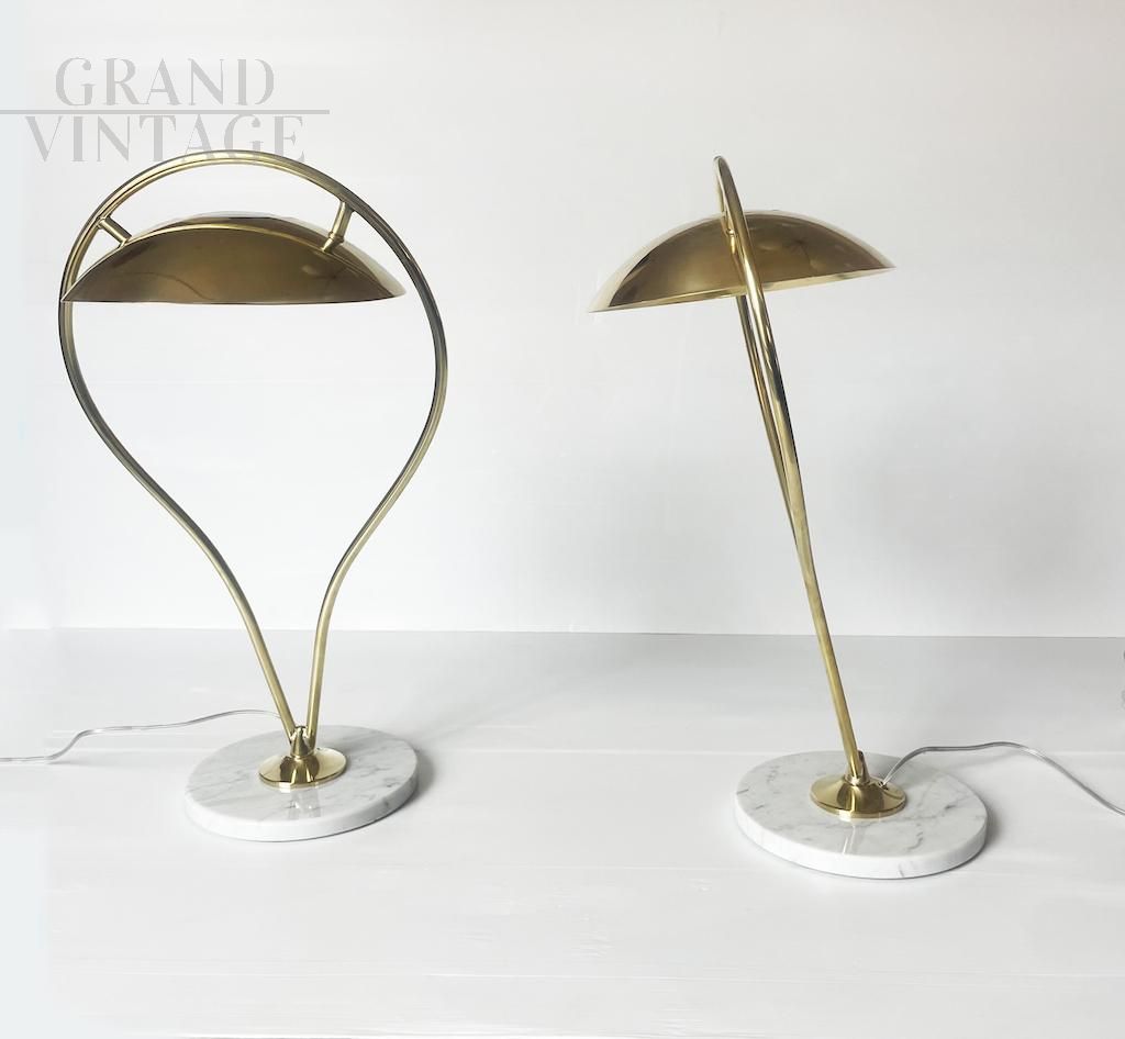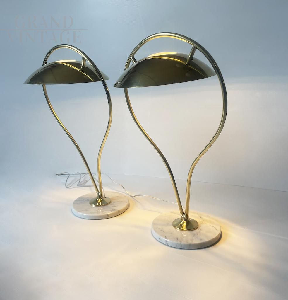 Pair of vintage brass and marble table lamps, 1970s