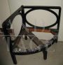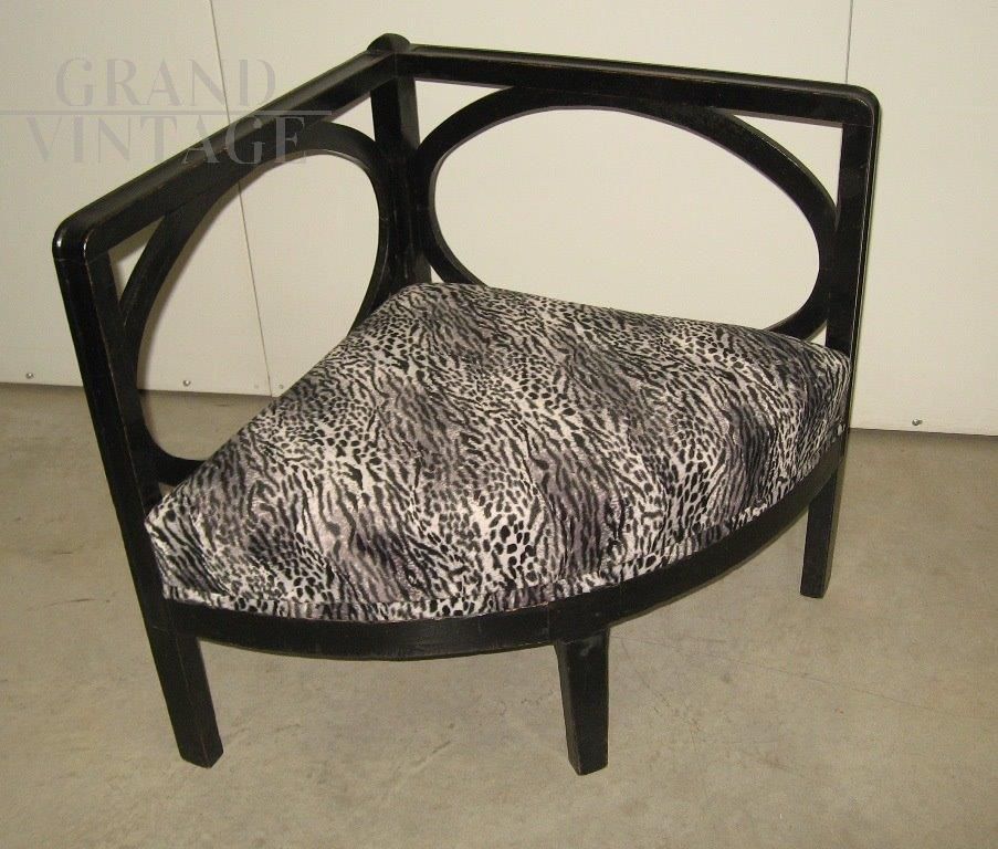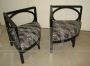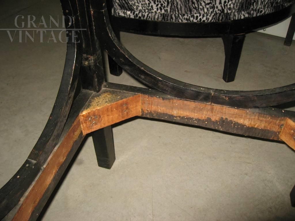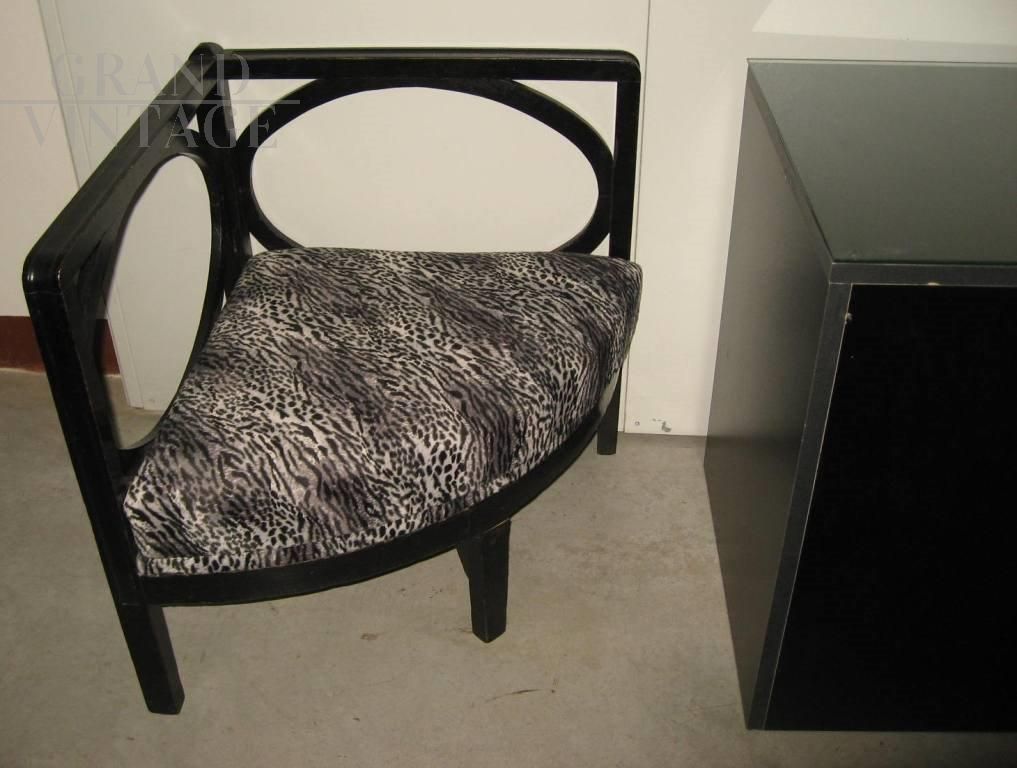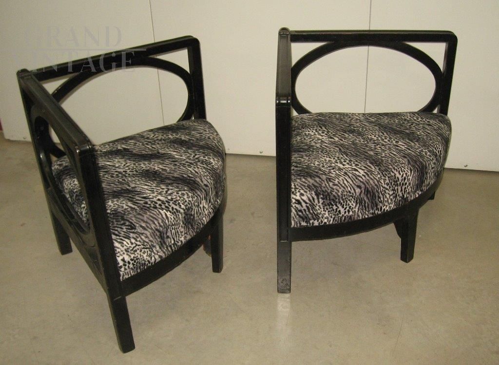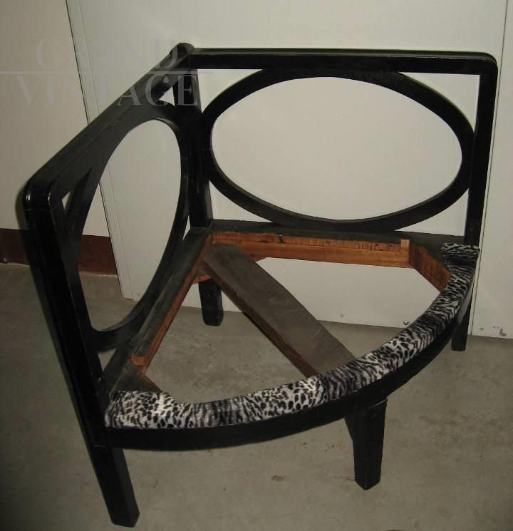 Pair of vintage armchairs from the 1960s in black lacquered wood, in excellent condition, with some natural signs of aging.