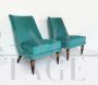 Pair of vintage design armchairs from 1970s in teal velvet