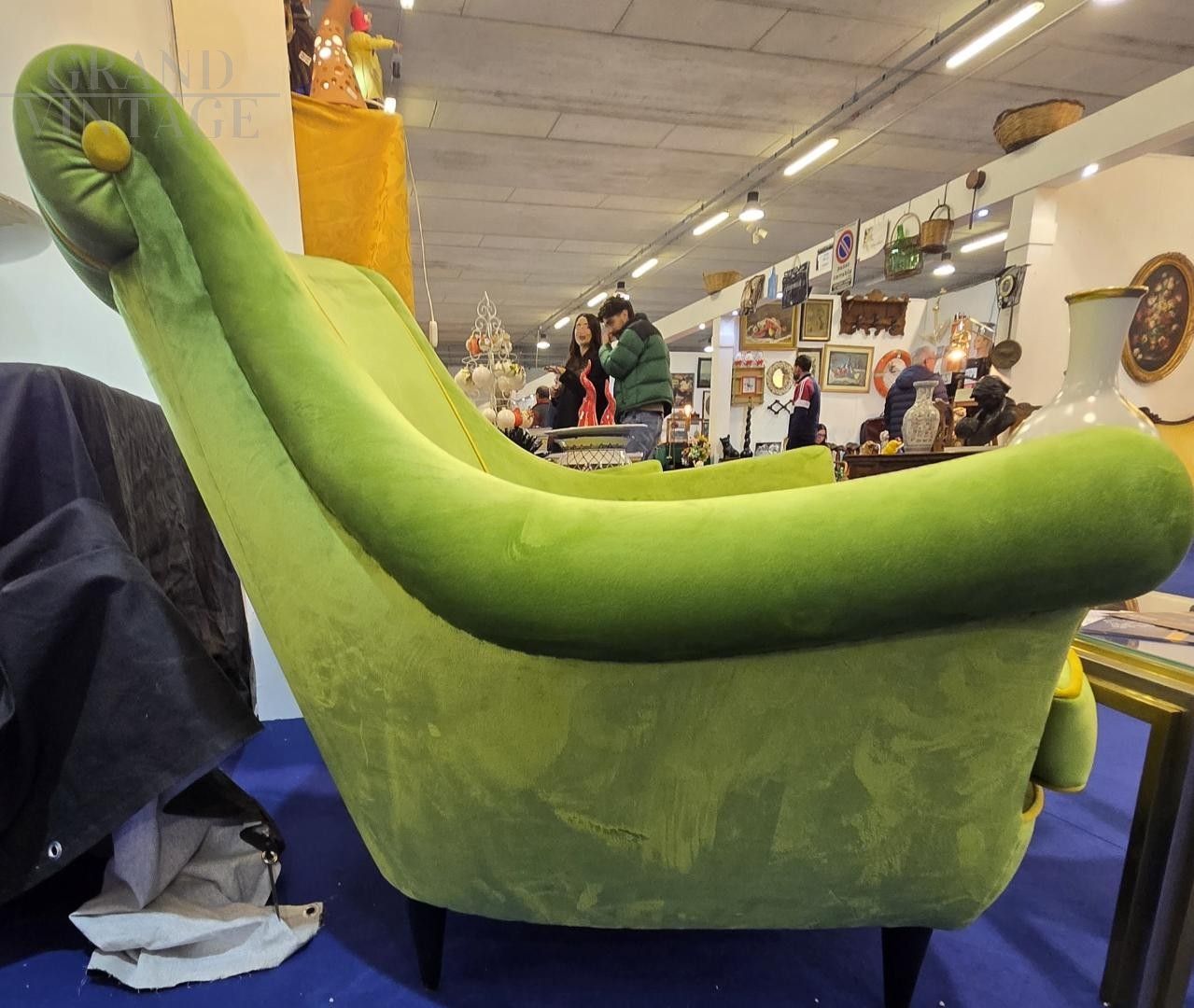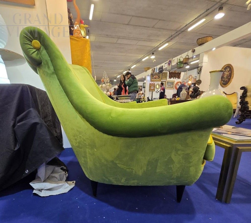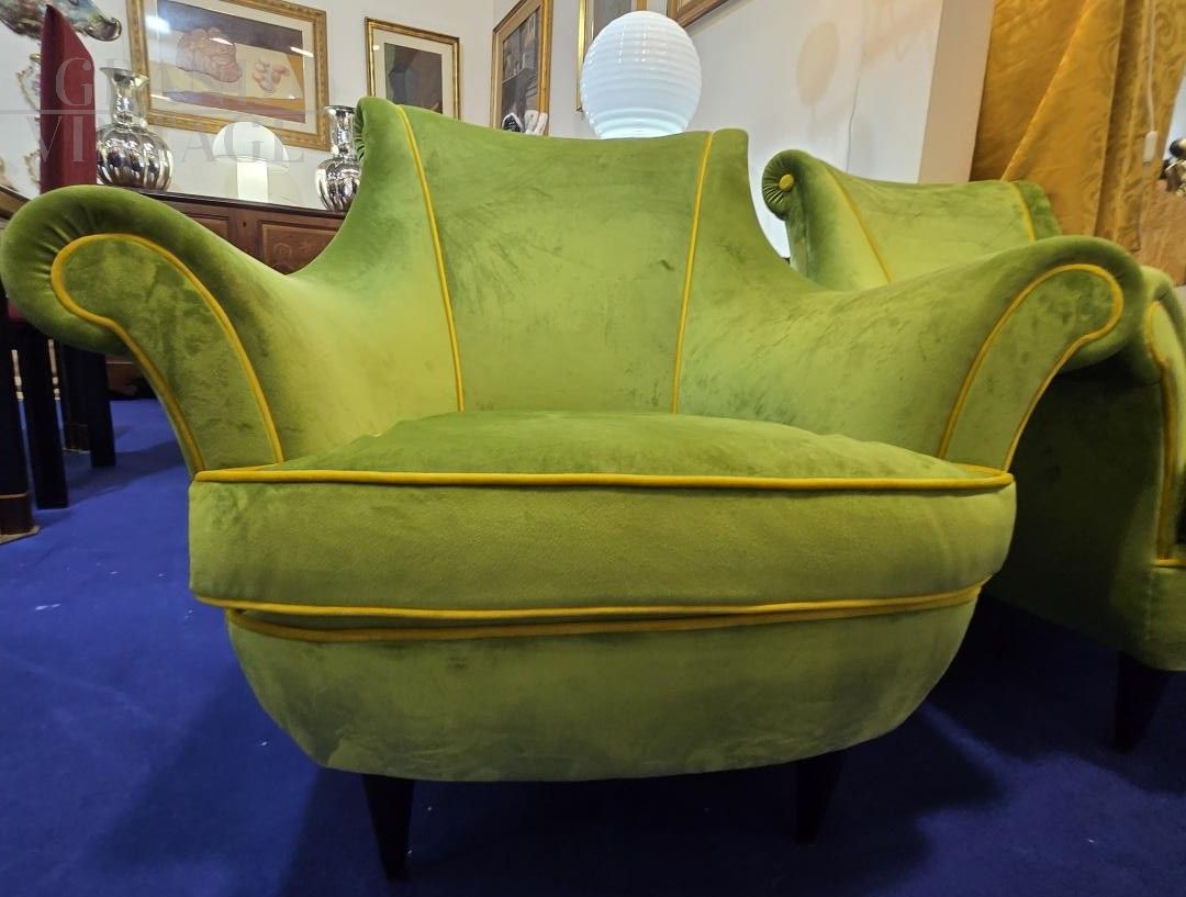Pair of armchairs with a particular design upholstered in light green velvet, like new.