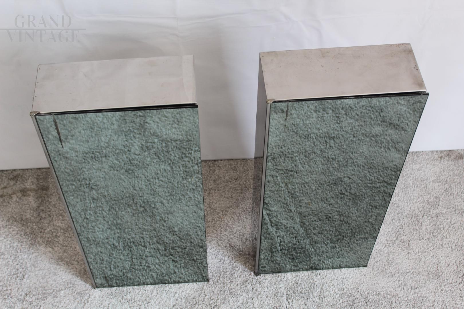 Pair of vintage metal hanging cabinets with mirrored doors, Italy from the 1970s, in excellent condition, with normal signs of use due to time.
