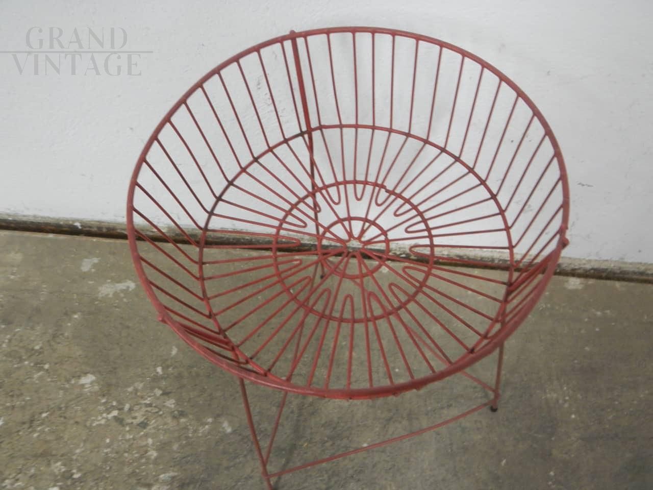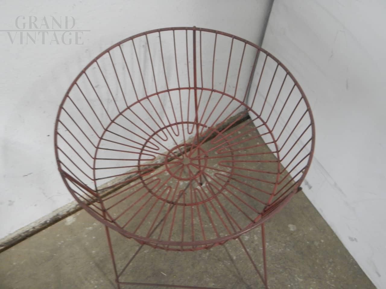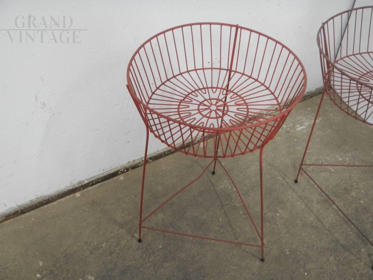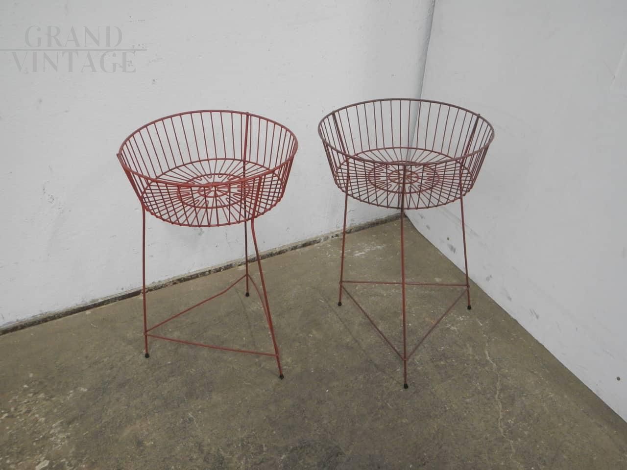 Pair of vintage shop display baskets in red plastic-coated metal, also suitable as plant stands. The baskets measure 40cm in diameter and 12cm in height. One of the 2 baskets shows signs of use, the other is in excellent condition. Original feet.