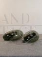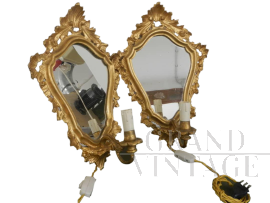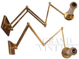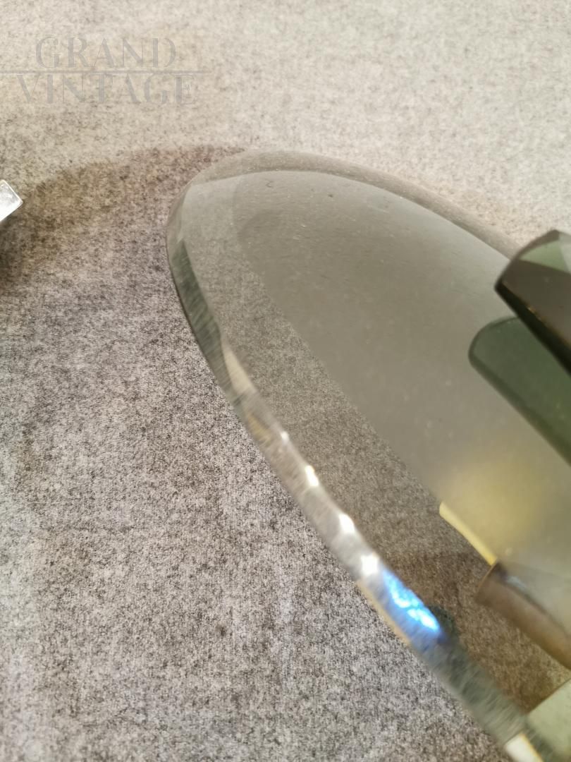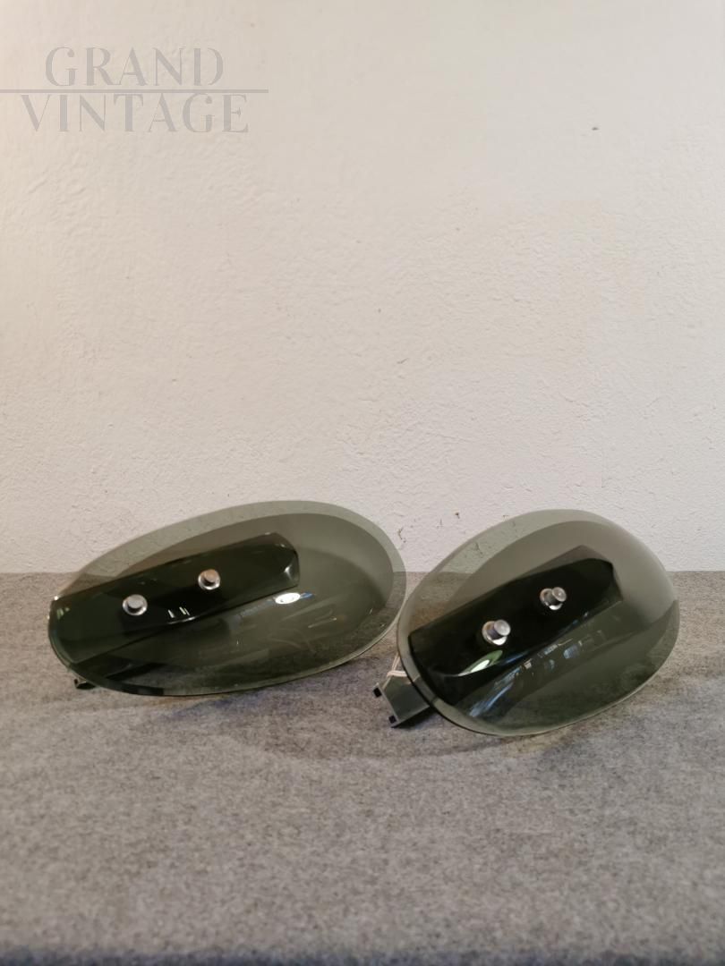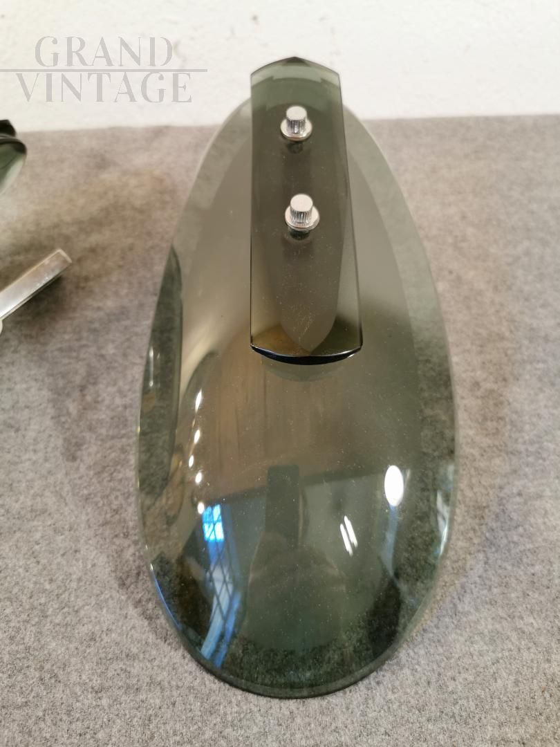 Pair of elegant vintage appliques with iron structure and smoked glass lampshade.