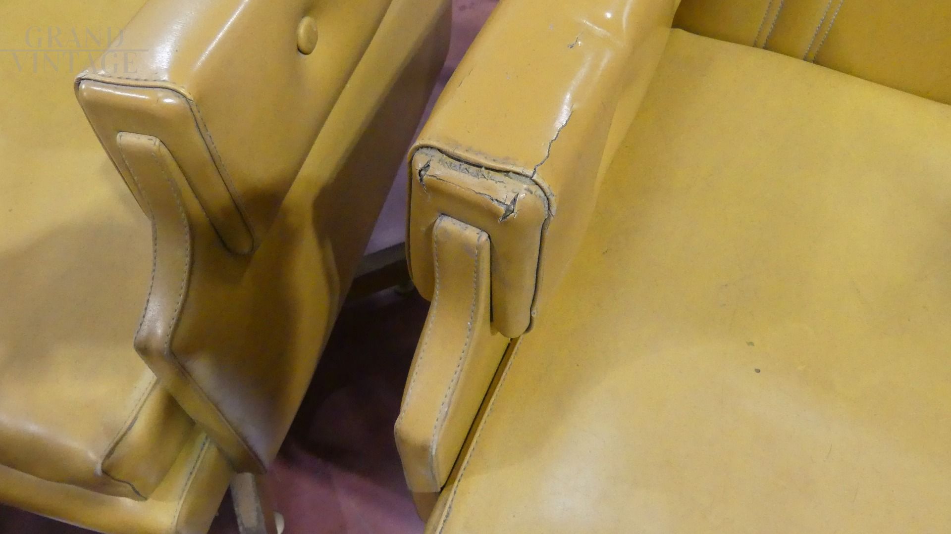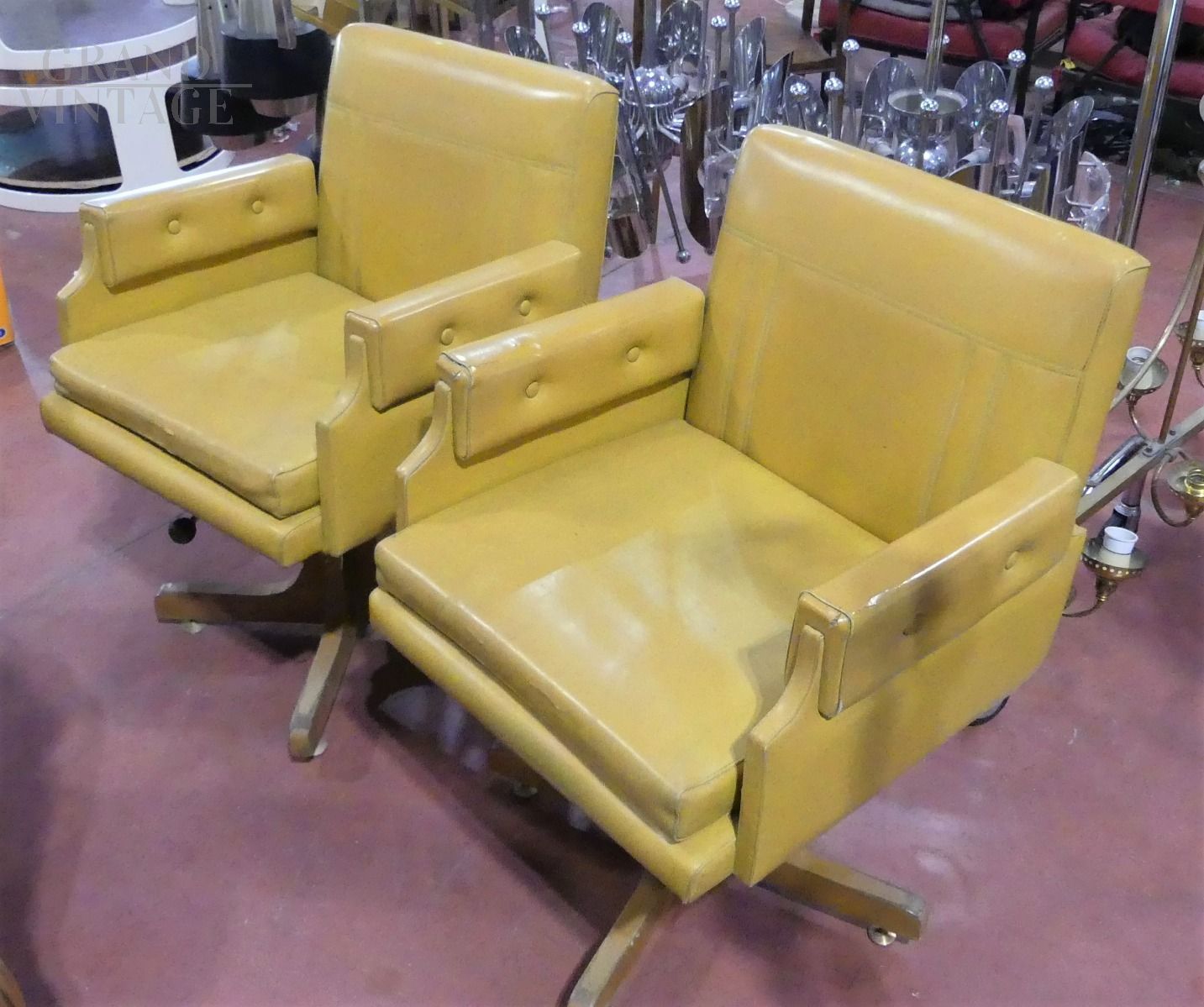 Coppia di poltrone vintage girevoli in skai giallo ocra