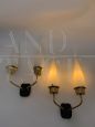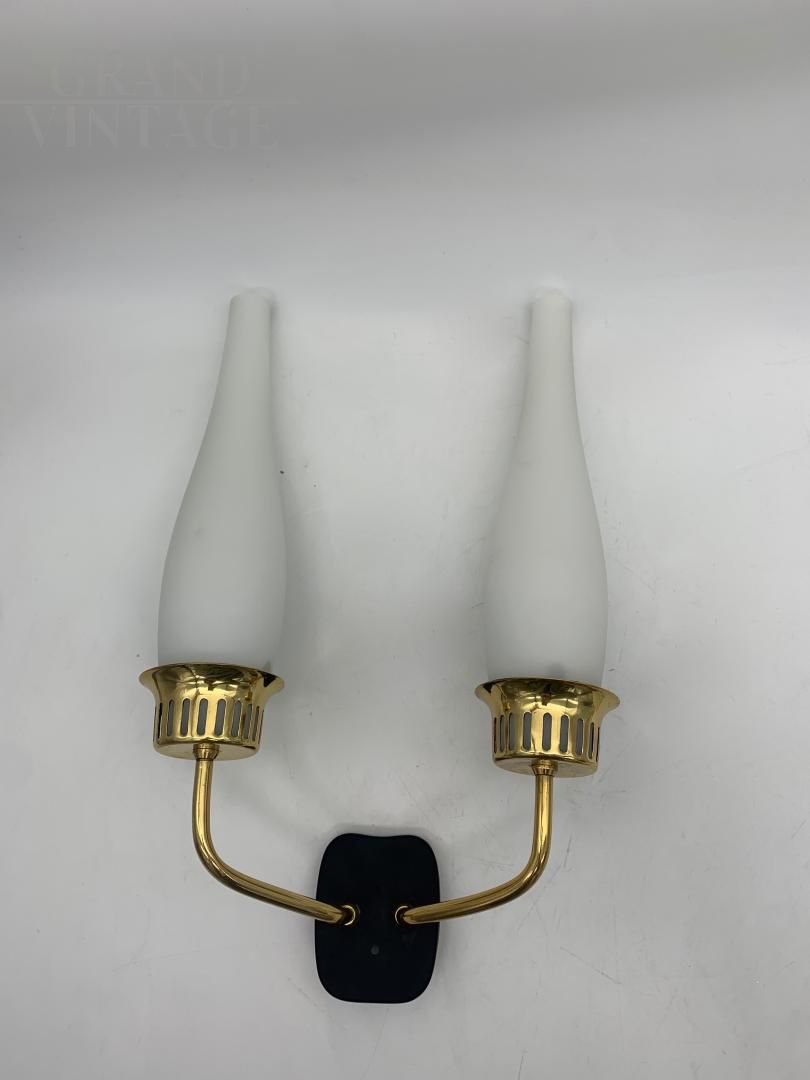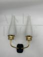Pair of wall lamps attributed to Stilnovo in glass and brass