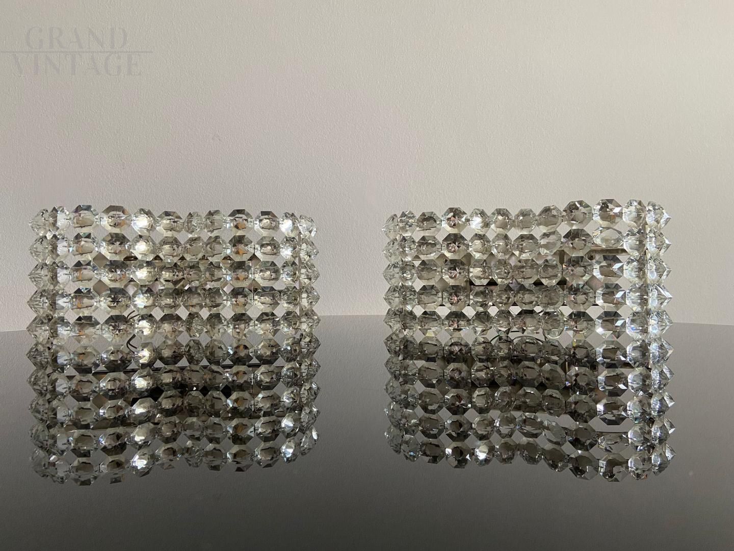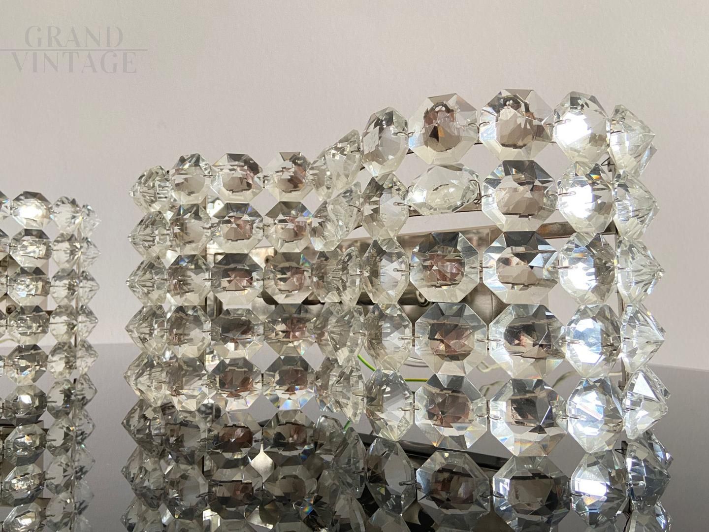 Pair of wall lights with octagonal crystal drops, Italy 80s