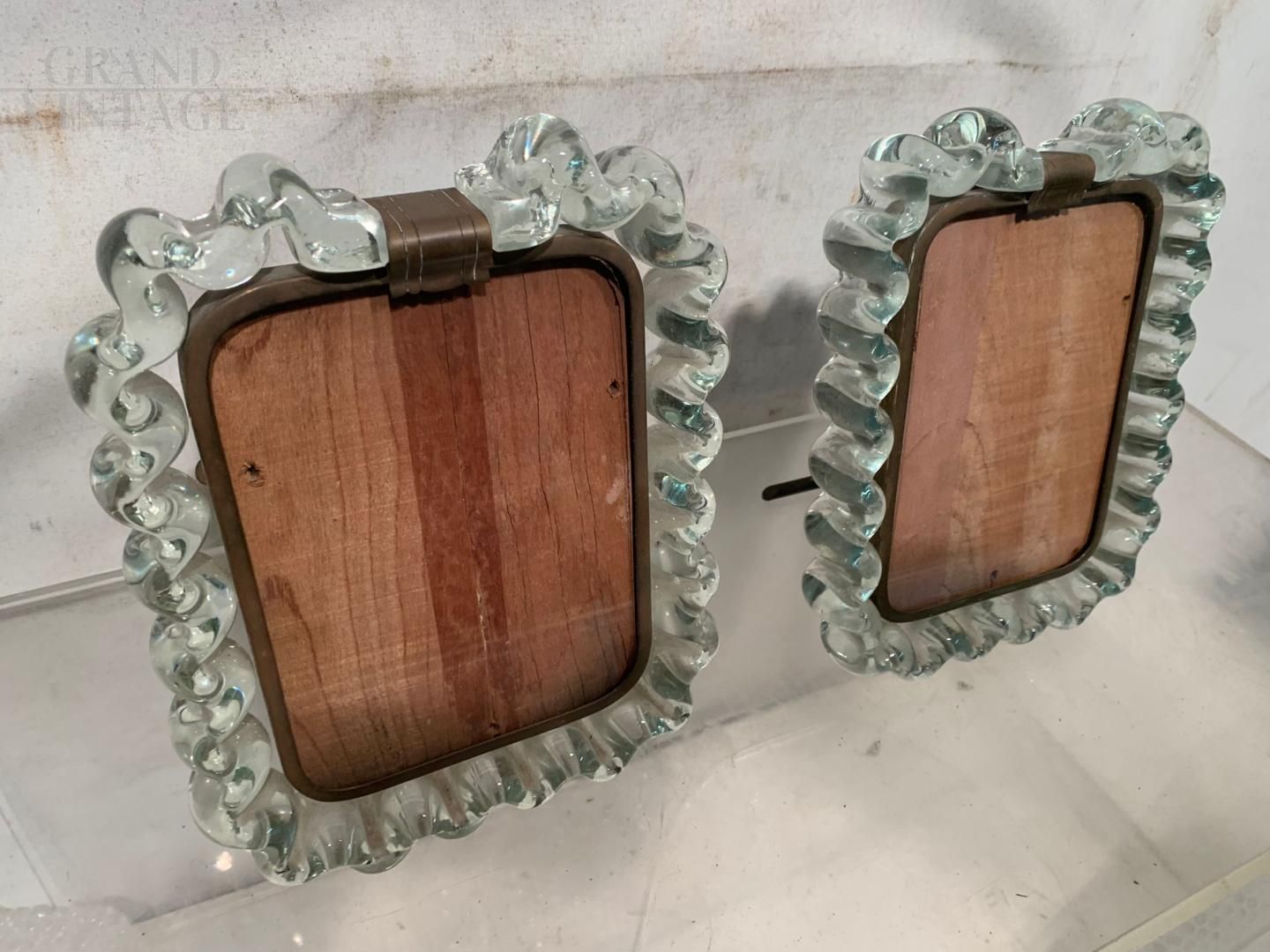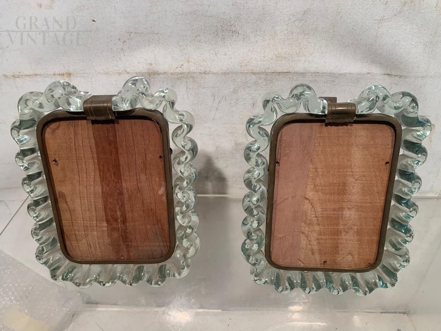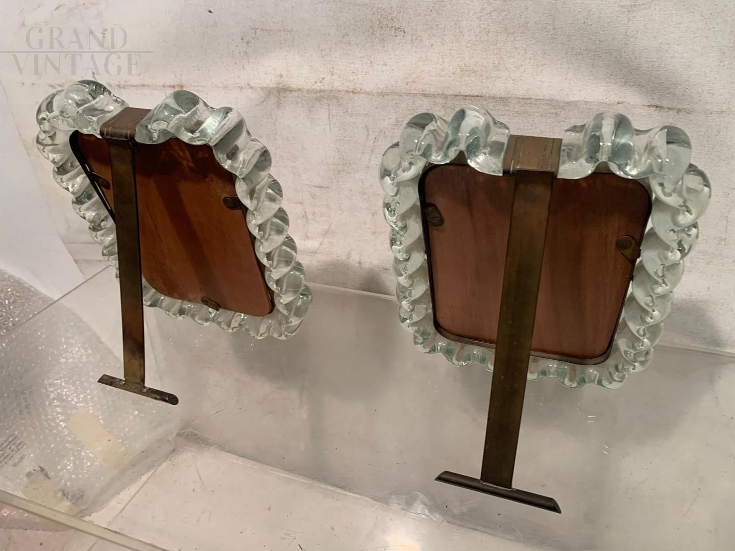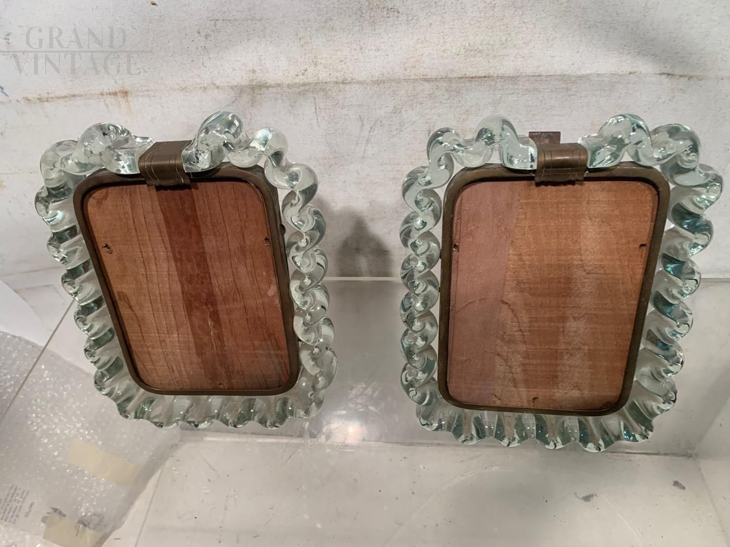 Pair of wavy Murano artistic glass frames from the 1940s