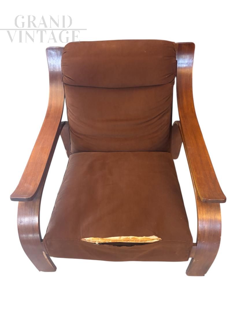 Pair of Woodline armchairs by Marco Zanuso structurally in good condition, need some restoration on the veneer and reupholstery. An excellent investment.