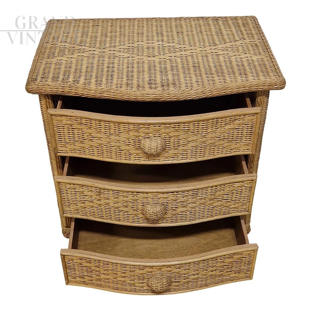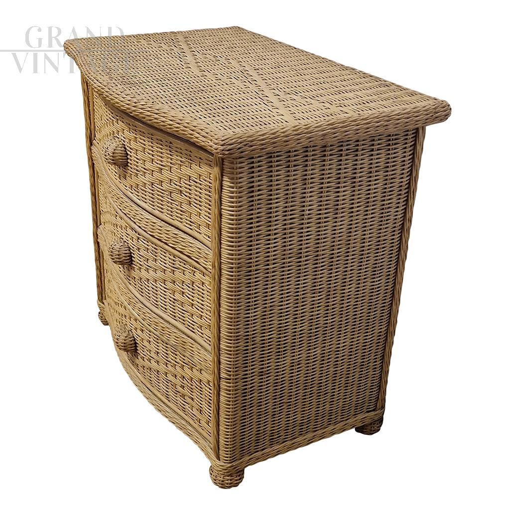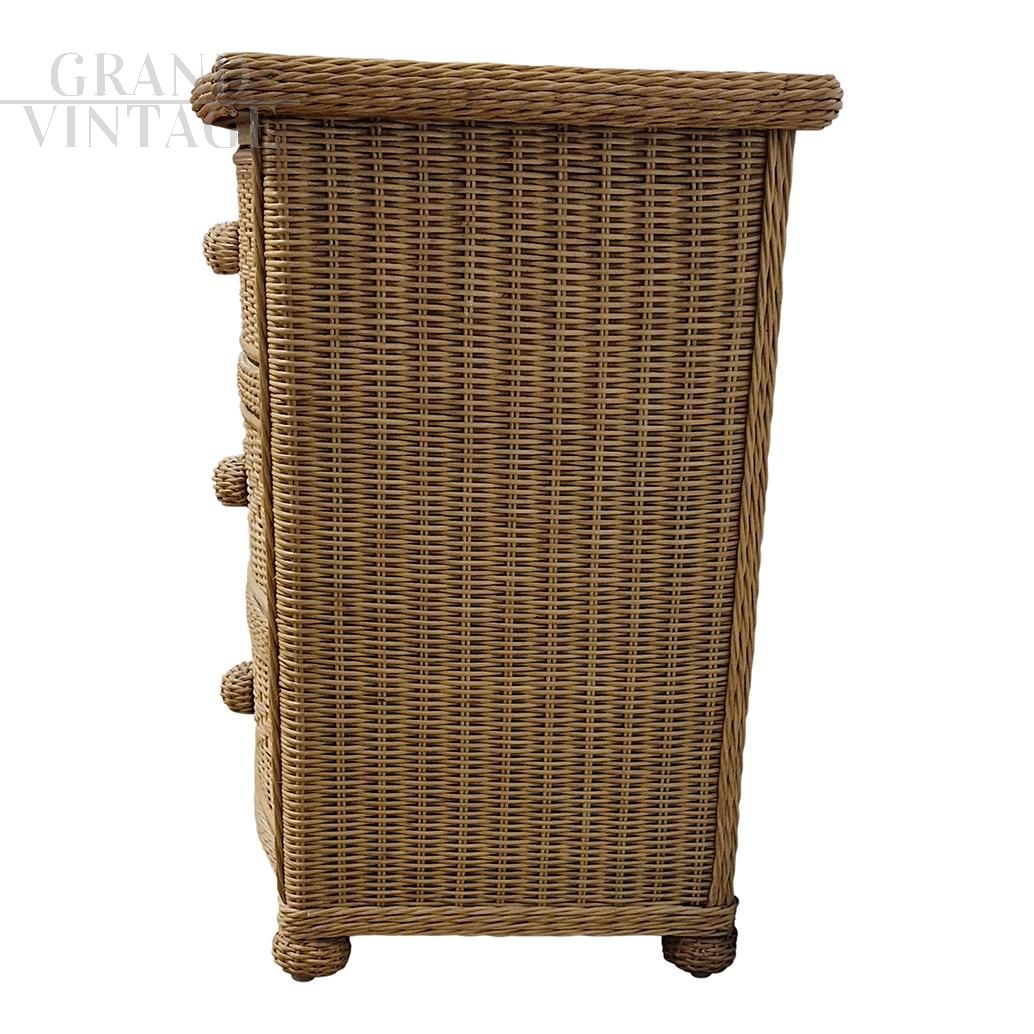 Pair of Dal Vera style woven bamboo and rattan dressers, each piece of furniture has three drawers.