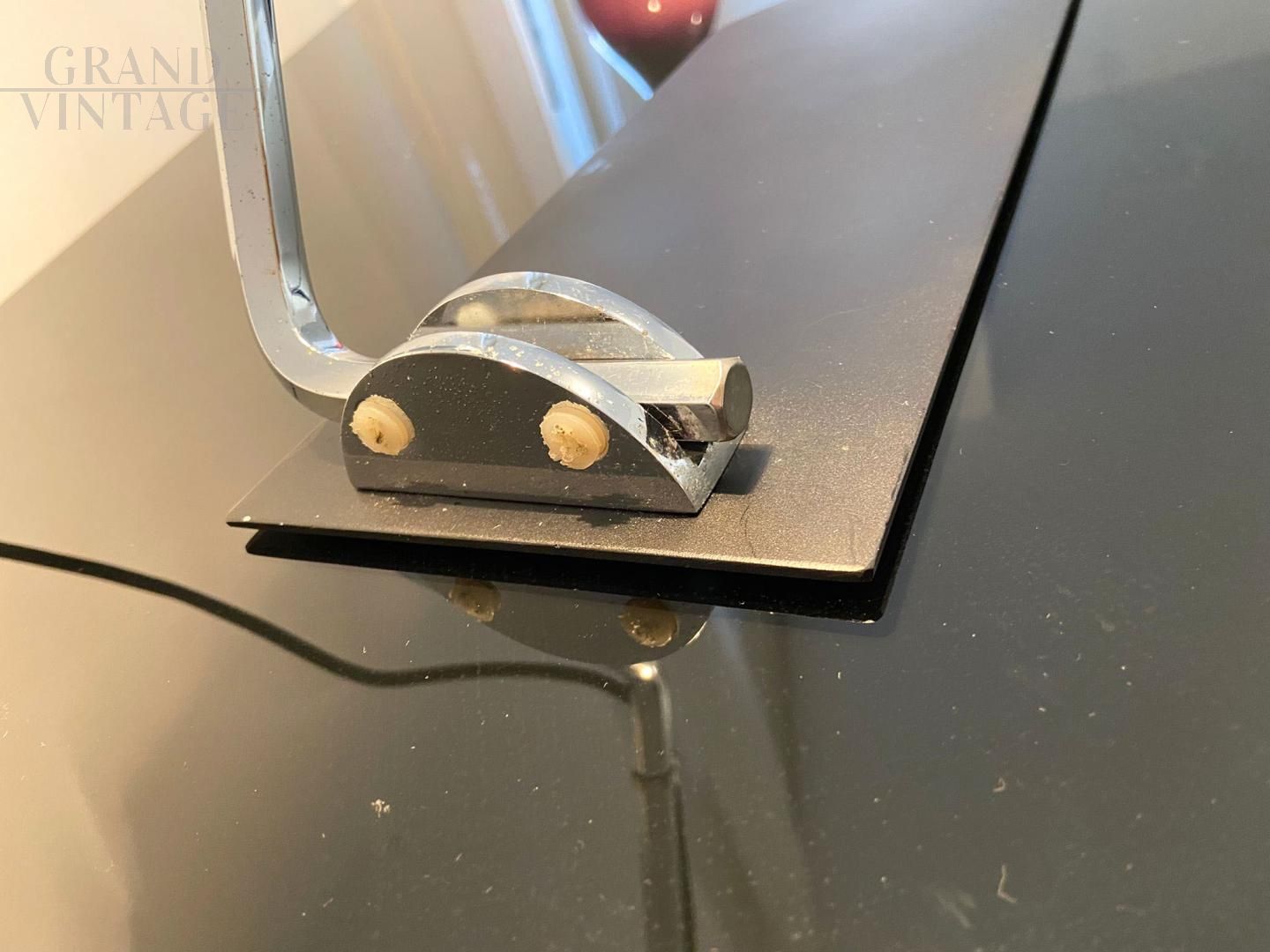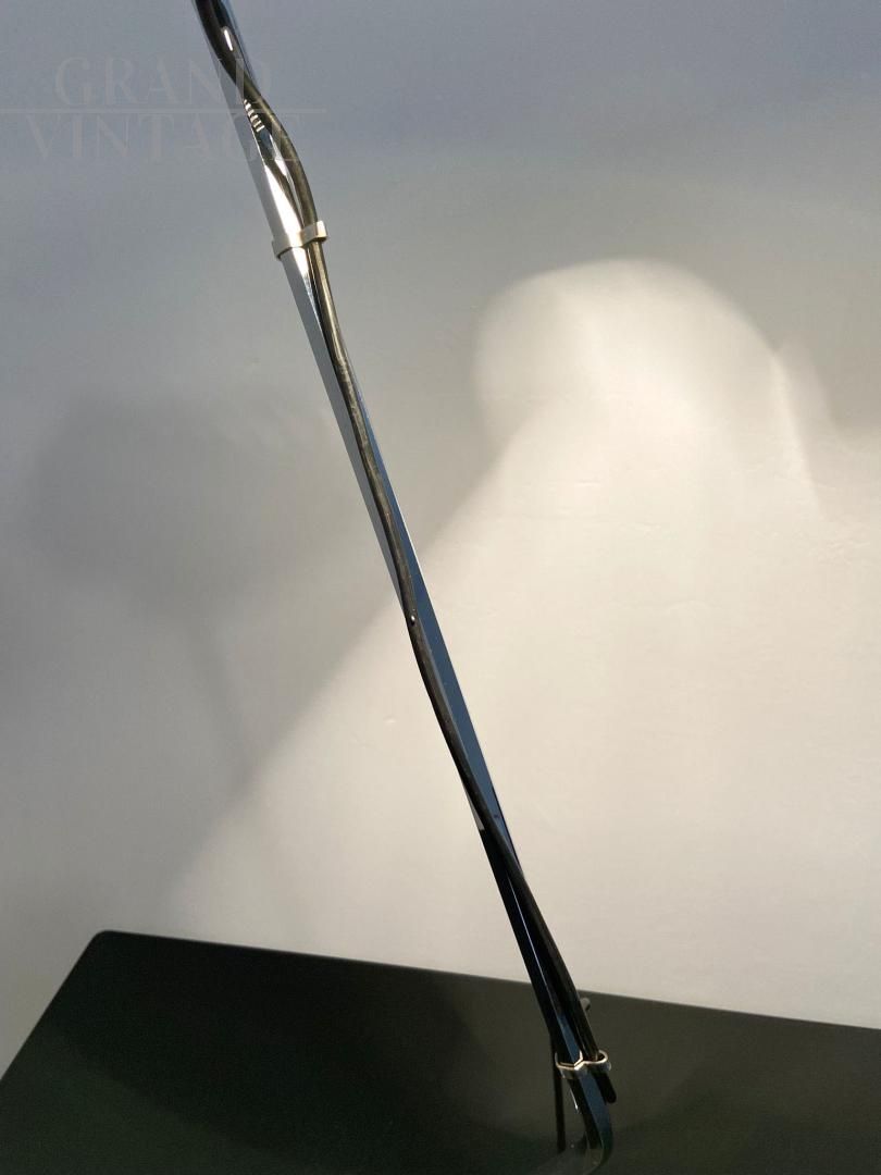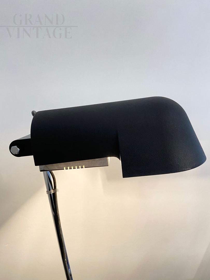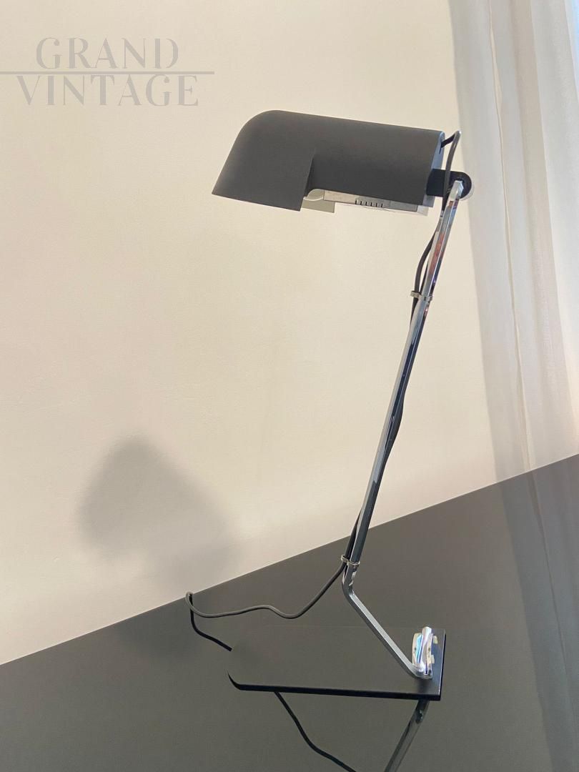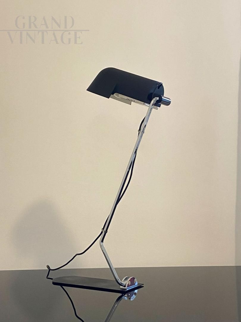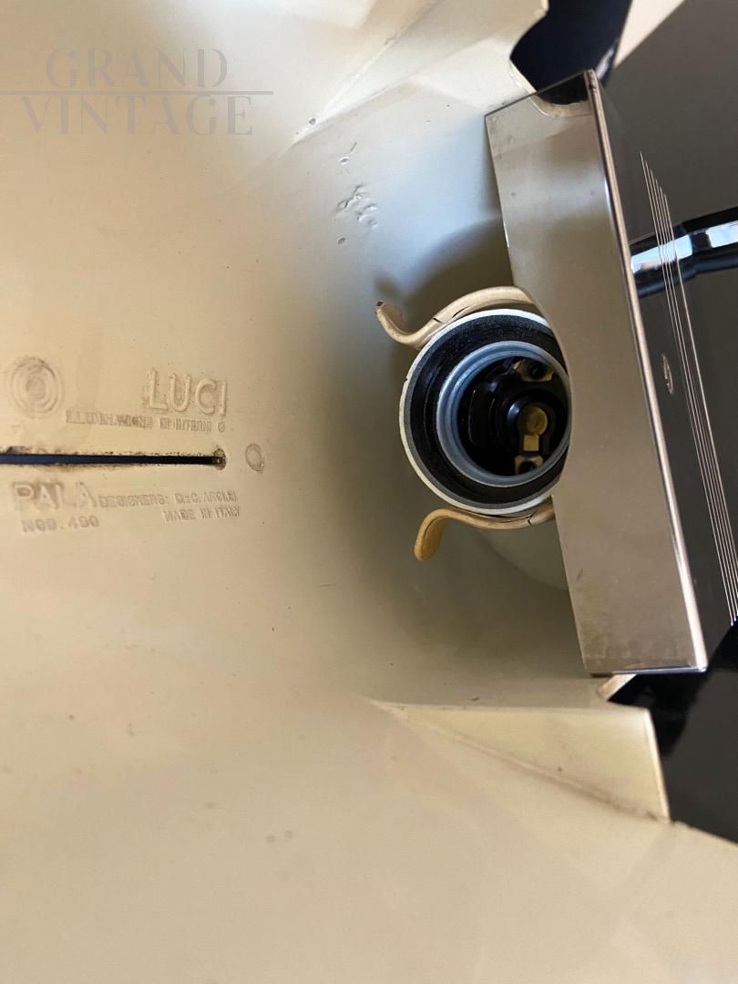 Pala table lamp by Danilo and Corrado Aroldi for LUCI, 1970s, Italian mid-century. This couple of Italian designers created a great variety of lamps, such as the famous Periscopio produced by Stilnovo. The Pala lamp is made of black painted die-cast aluminum, chromed metal and black plastic. This original lamp has lines that correspond to the style of industrial design with an original shape, and the angle of the light can be adjusted by sliding it from the joints in the base and in the reflector. The lamp is in excellent general condition and in working order, with some normal signs of wear due to its age.