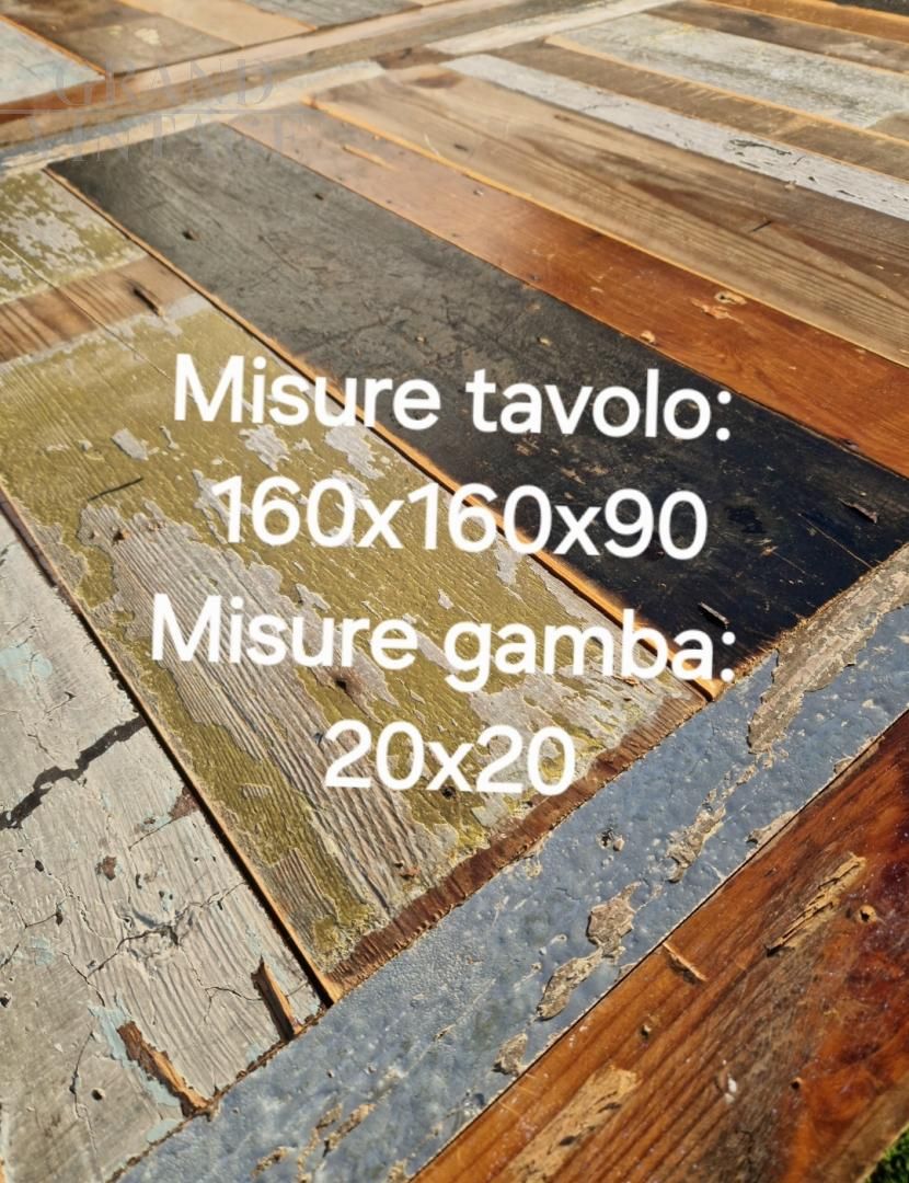 Patchwork table made with recycled woods of different colors, perfect for decorating an industrial context.