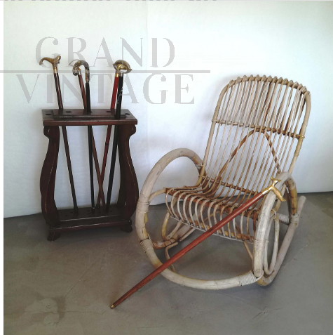 Bamboo rocking chair, 1960s. The chair has been restored, the frame is intact. There are signs of use. Refreshed with whitening wax varnish.