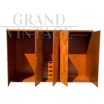 Incredible, very rare and breathtaking 5-door wardrobe designed by Tito Agnoli for Caleido, a Poltrona Frau company, in 1970.