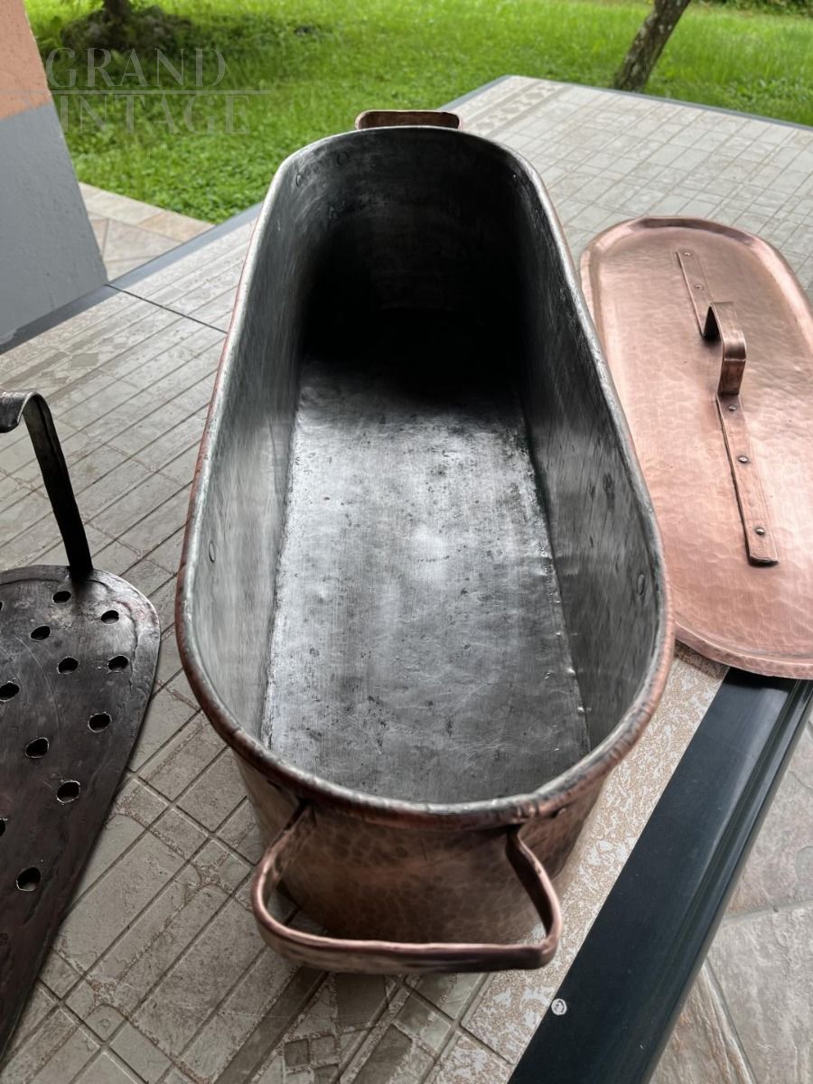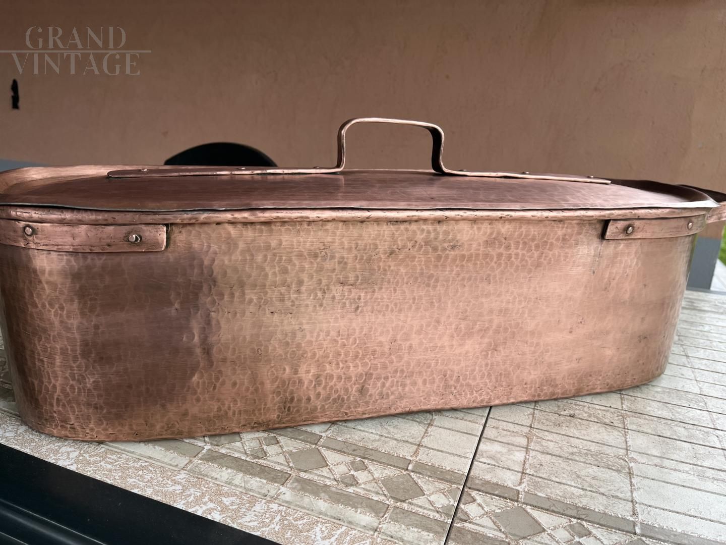 Vintage fish kettle - hand hammered copper fish cooking pot.