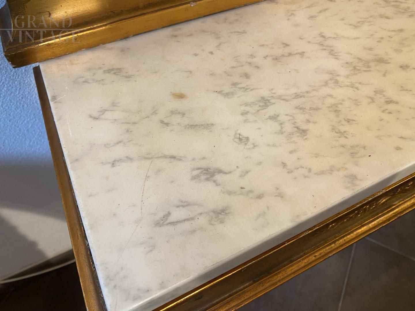 Small antique console table from the Empire period in gilded wood with mirror