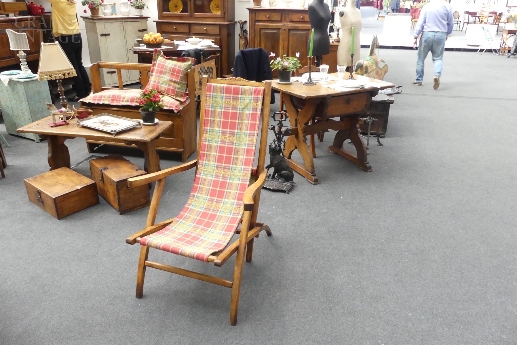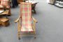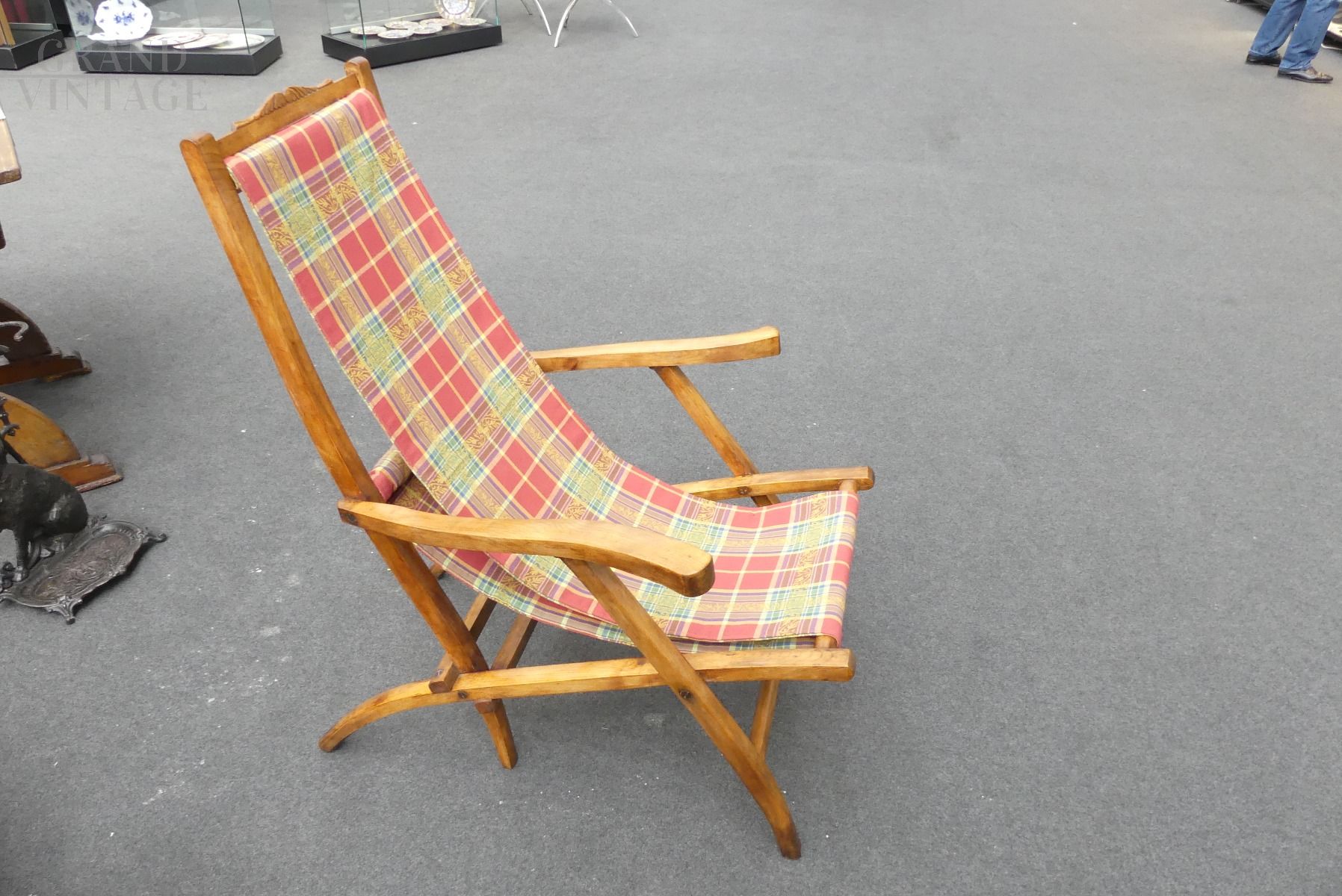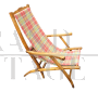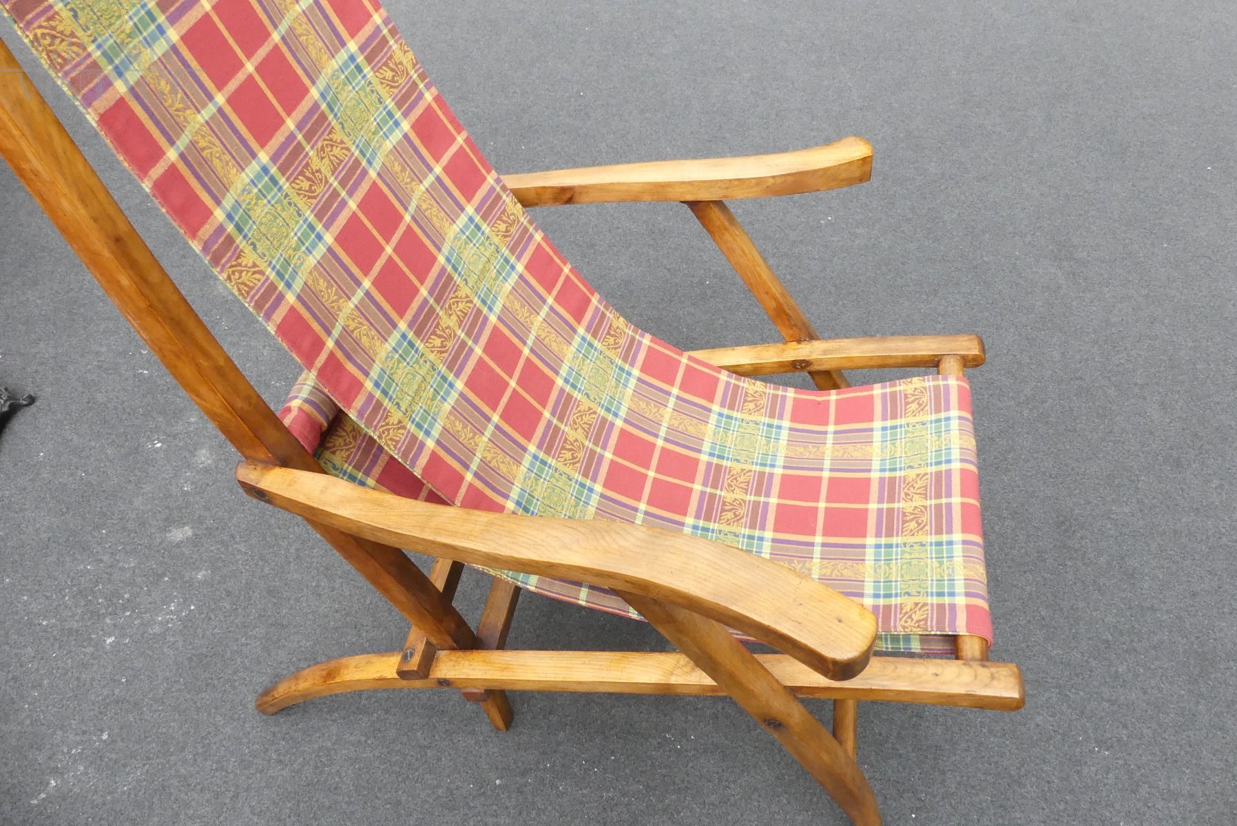 Antique Piedmontese Italian deckchair from the late 19th century, made from cherry wood. The fabric is new.