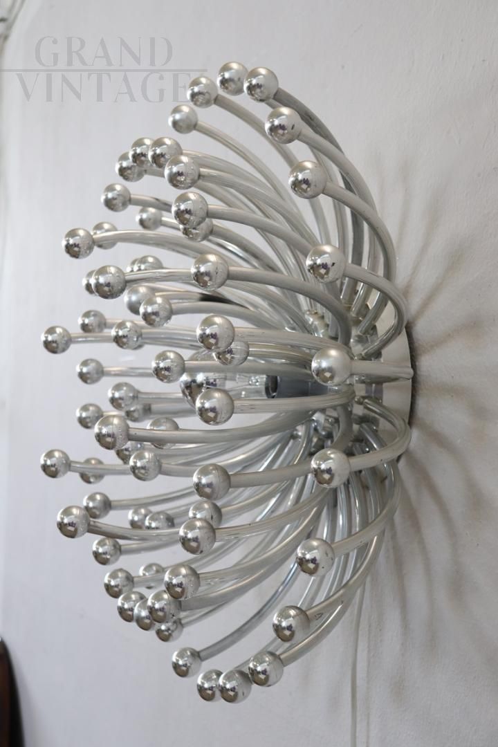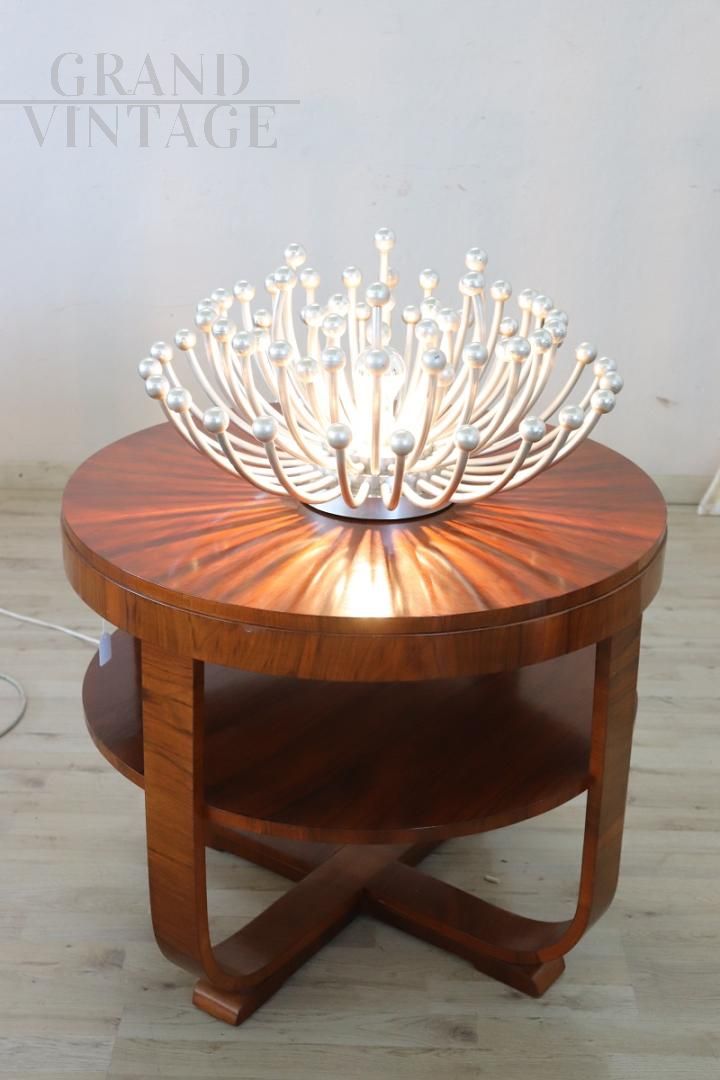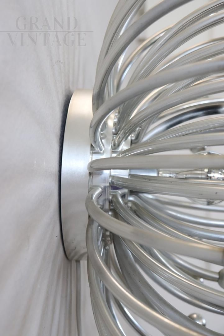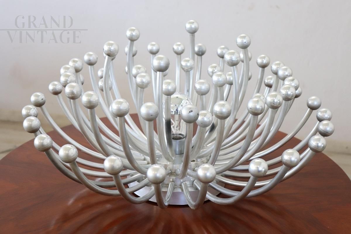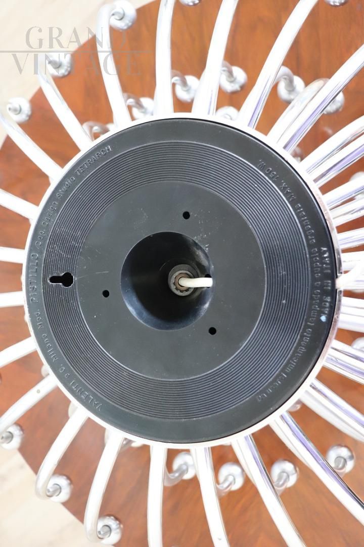 This extraordinary Italian design lamp, with the Valenti & C. brand under the base, is a true masterpiece of the 1970s. The Pistillo model, designed by Studio Tetrach, features a stunning fusion of modern materials such as plastic and chrome, reflecting the innovative aesthetics and functional approach characteristic of the best Italian designers of the time. The condition of the lamp is good, with minimal signs of wear that are barely noticeable when the lamp is positioned, as shown in the photos. The electrical system has been rewired. Inspired by the pistil of flowers, this lamp is not only a functional object but also a sculptural work of art that draws on the forms of nature. Brand present, price negotiable.