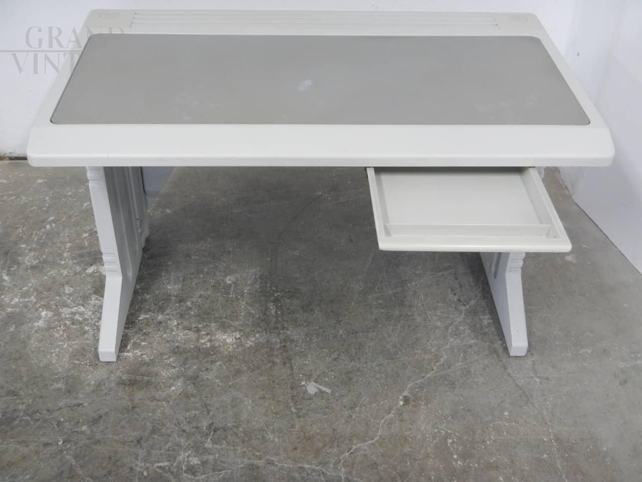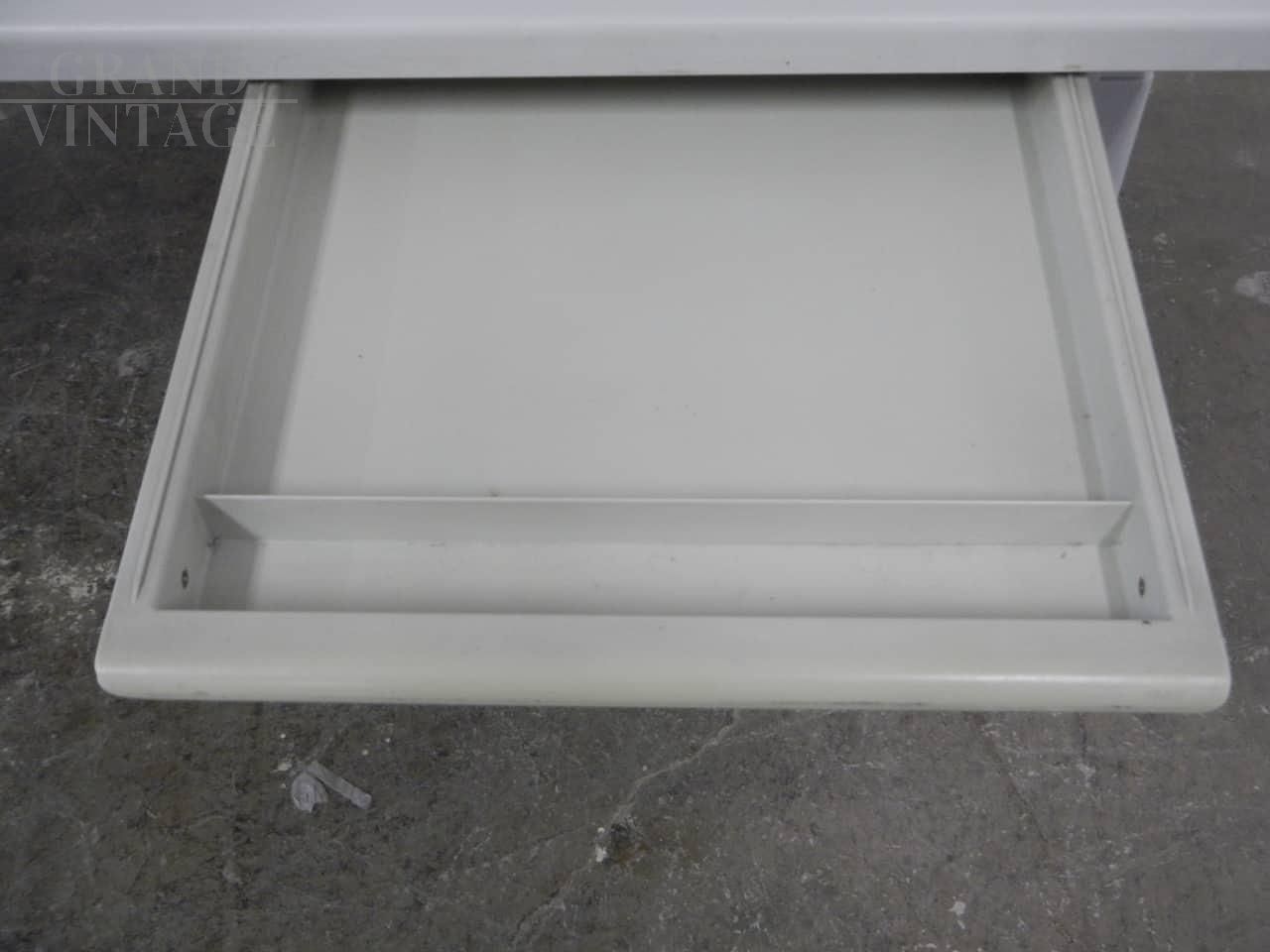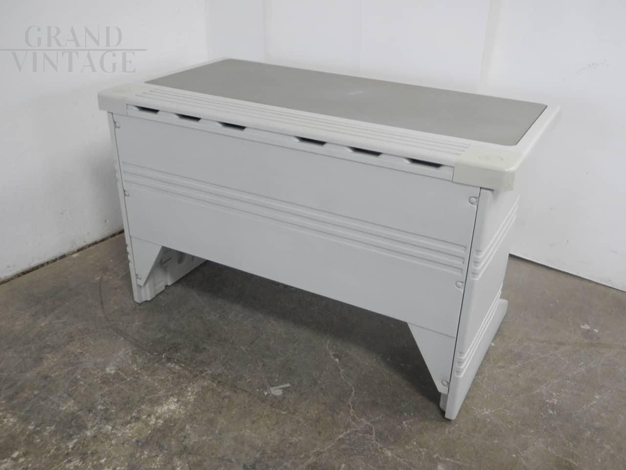 Vintage American plastic desk produced by Microcomputer Accessories, Made in USA - Los Angeles, with a drawer, a cable holder and a pull-out top measuring 113 x 46 cm. The top has defects as shown in the photo. In fair condition with signs of use.