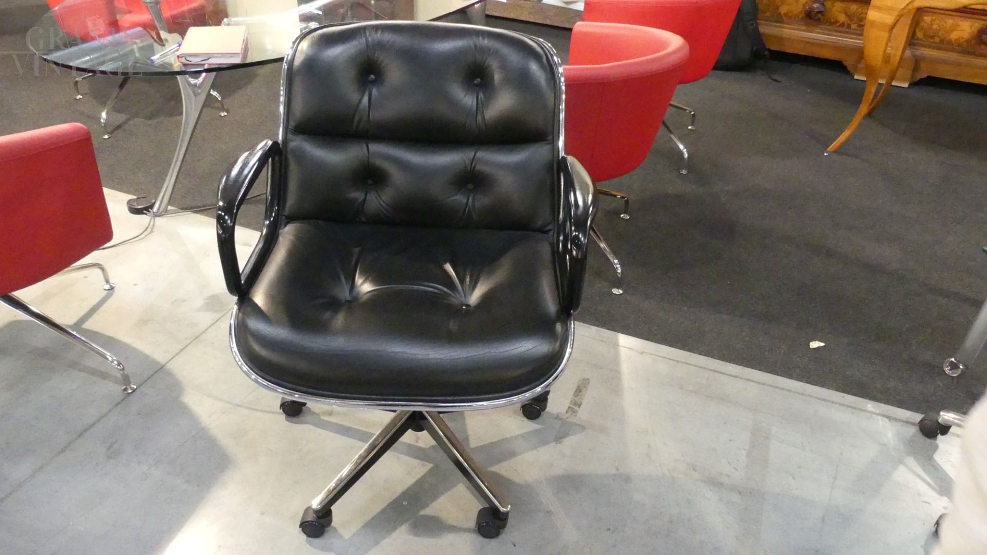 Poltrona da ufficio Pollock di Knoll in pelle nera